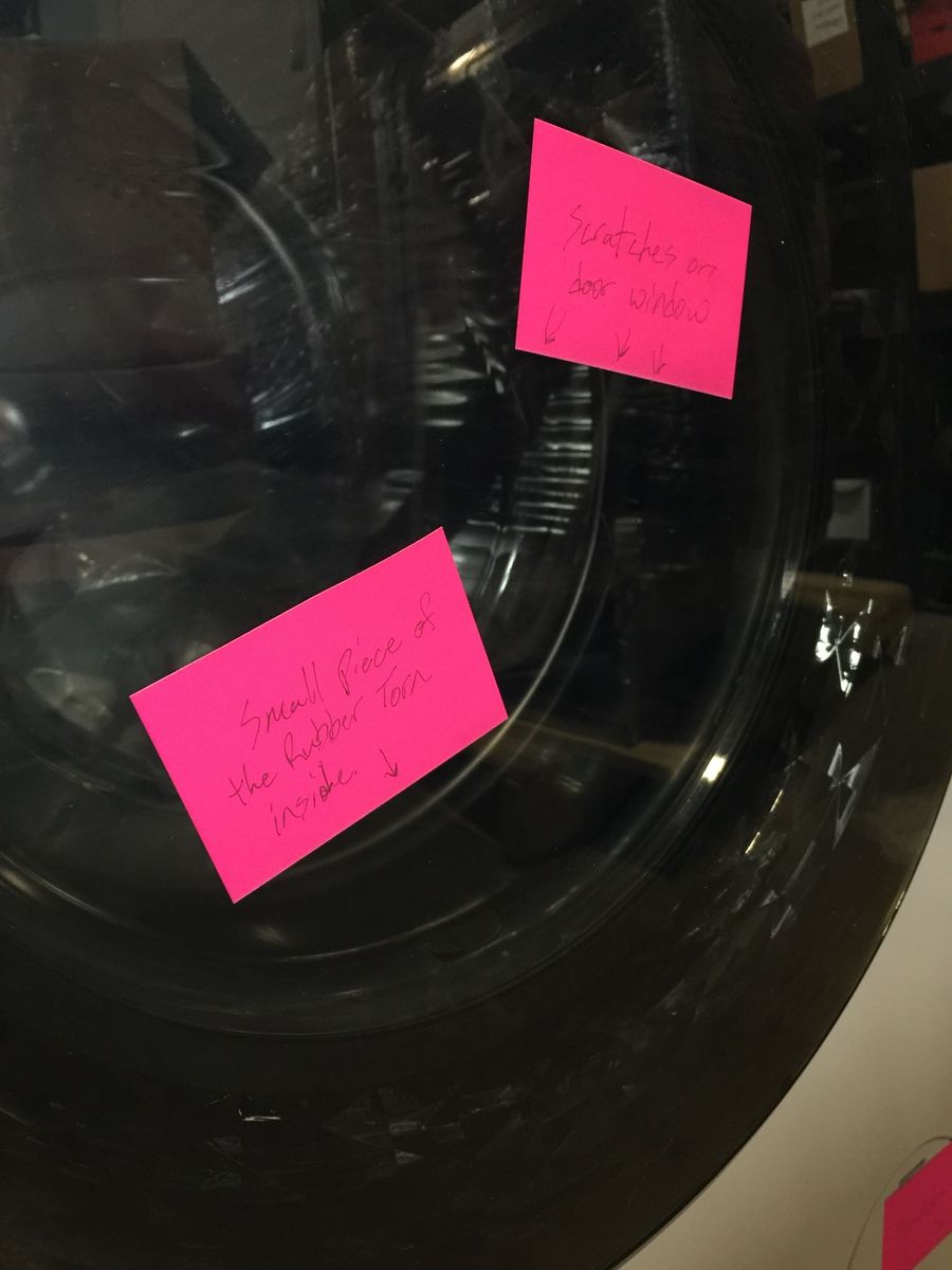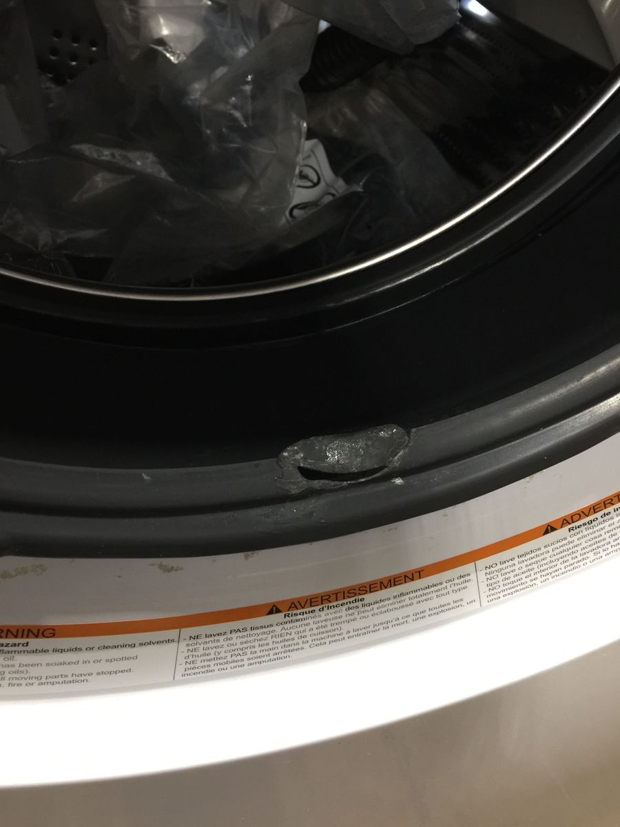 This unit is heavily discounted because it does have some cosmetic defects including scratches on the top and on the bottom right corner, a small tear in the rubber door lining, and a light scratch on the door window. Other than the cosmetic defects it is new and unused, and in proper working condition.