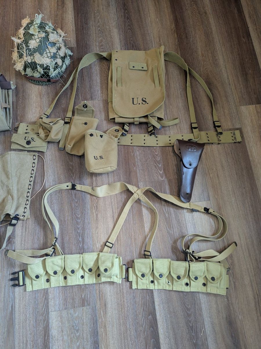 Helmet, pouches, paratrooper pants, haversack, holster, etc. are all included with purchase.