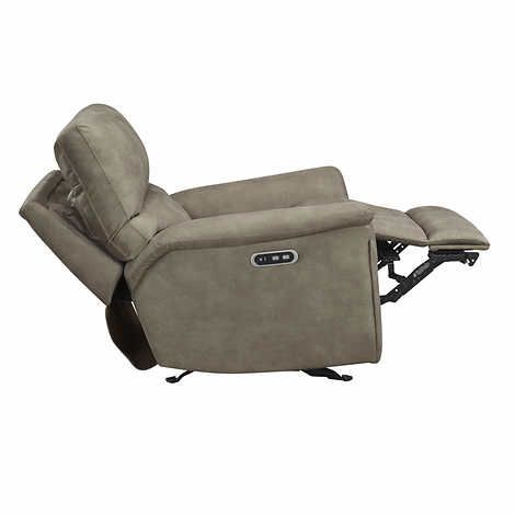 Add style to your space with the Barcalounger Power Glider Recliner with Power Headrest, that offers quality features in construction, fabric and styling. The recliner is covered in a brown colored 100% polyester fabric. The expert seaming detailed lines enhance the overall tailoring and style. The seat cushion features pocket coils and sinuous springs for the ultimate comfort. Enjoy the power recline feature, with a full chaise for complete leg support and the ease of charging your phone or tablet using the built-in USB port.