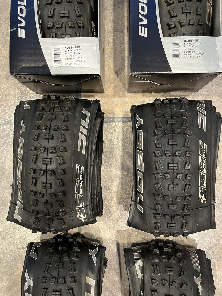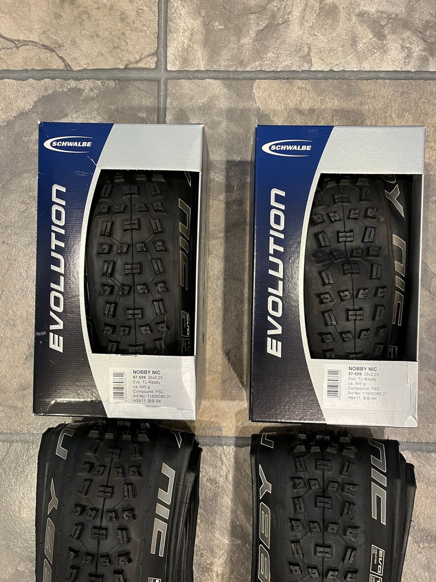 Brand new Schwalbe Nobby Nic TLR (Tubeless Ready) tires - Evolution Series (the best Schwable available). Selling for $35 each or $60 for a pair. Can run tubeless or with tubes. Excellent tires for Utah trails.