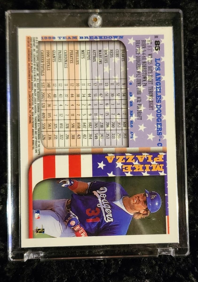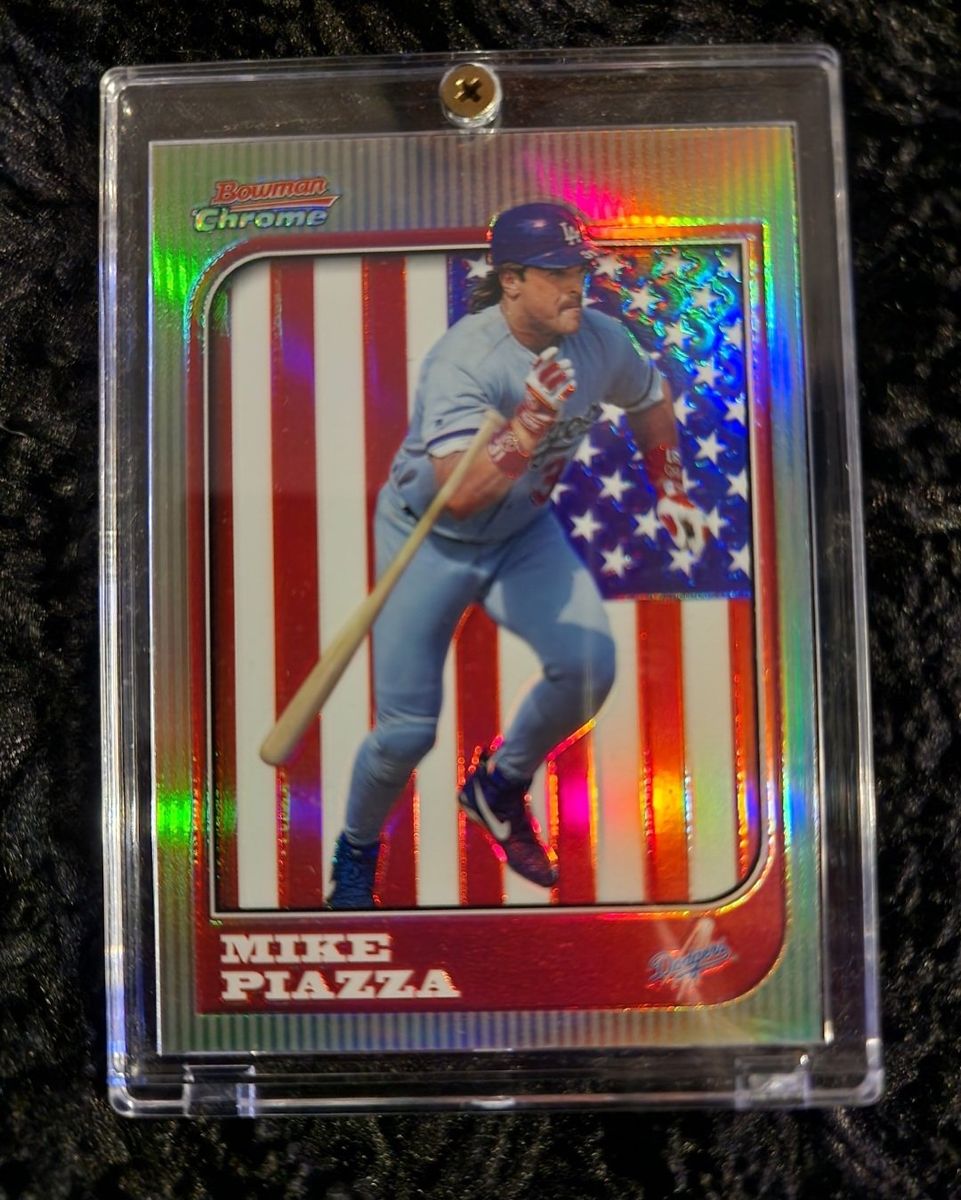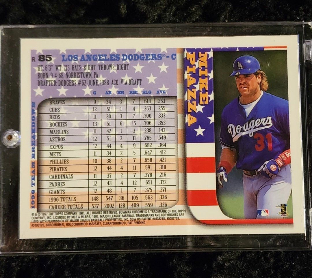1997 Bowman Chrome Refractor Mike Piazza #85 Asking $120 OBO. Cash only please. don't hesitate to ask for better pictures if needed. Texts/Messages are the best way to contact me. Thank you for looking.