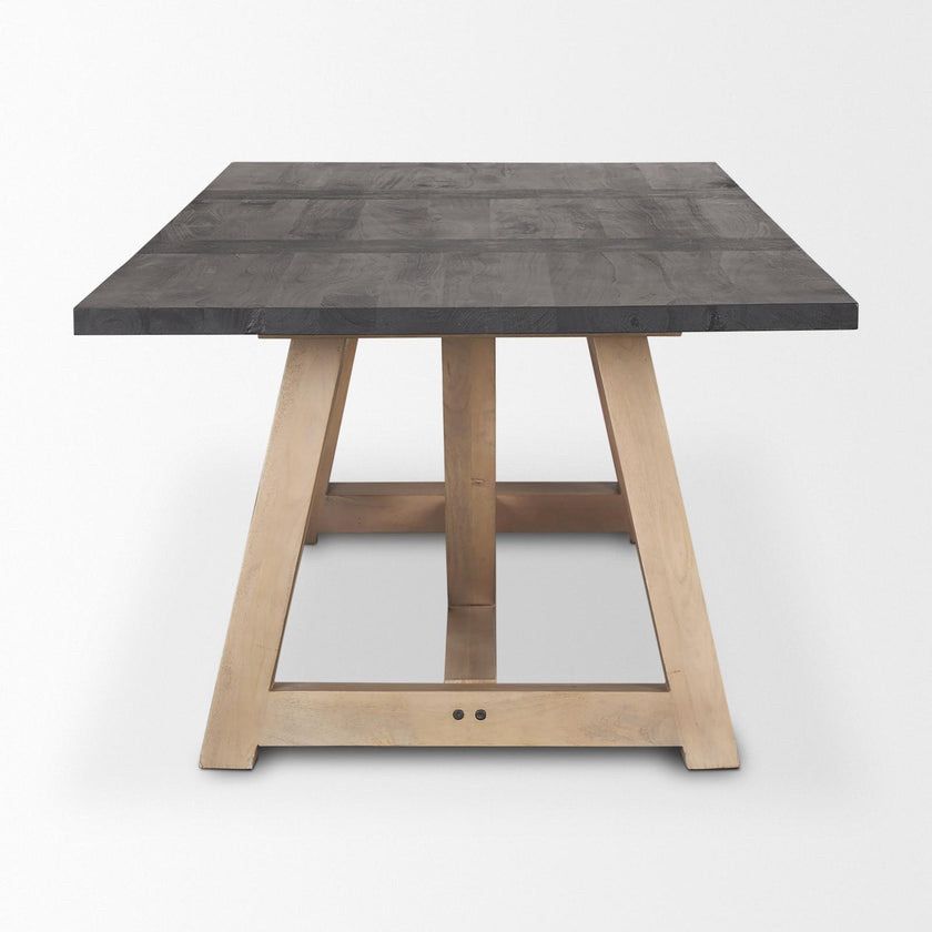Beautiful Rialto rectangular dining table in a modern two-tone black and brown finish. Made from solid wood—this is a heavy, high-quality piece that makes a statement in any dining space.