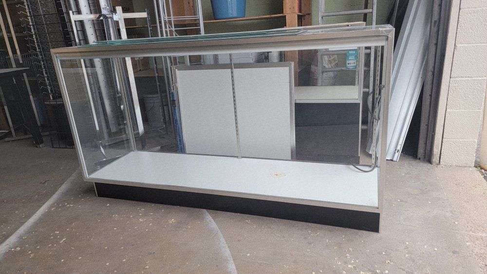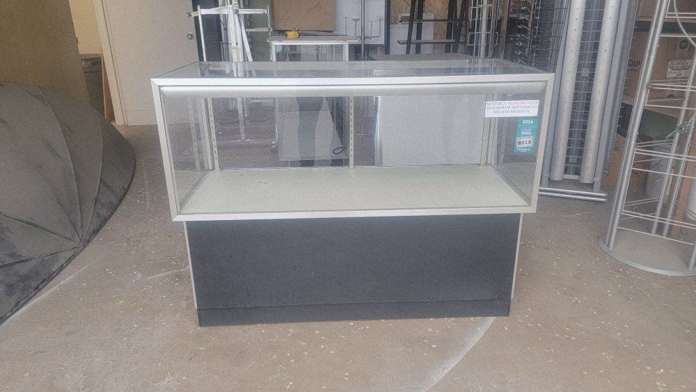 Used glass display cases: 1-20"x4' 2- 20"x6' $150.00-175.00 OBO. I also have clothing racks and 4 shelf display.