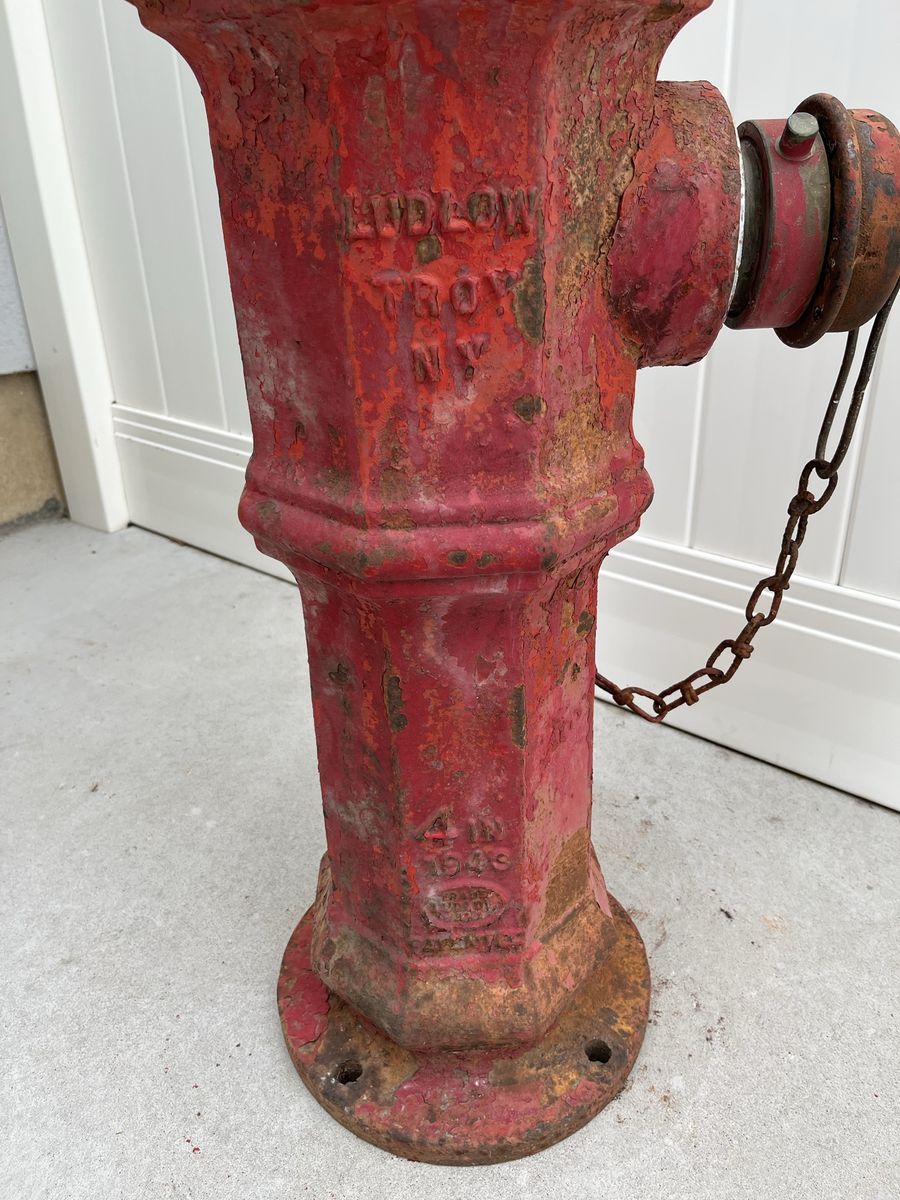VenmoThis is a vintage Ludlow fire hydrant manufactured in Troy, New York with a date of 1943. It has a 4" barrell, Ludlow Trade Mark, Patented. This is a great restoration project or "as is" for a man cave. It has been outside for many years and is a very collectable piece of firefighting history.