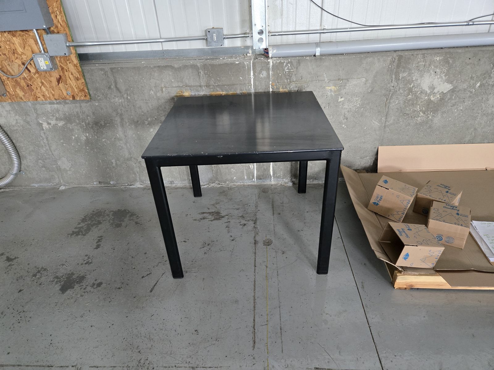 VenmoThis is a small black table. We've used it in our warehouse, but it would be fine for a small dining table as well. Its a little beat up, but still in good shape. Just small cosmetic damage.