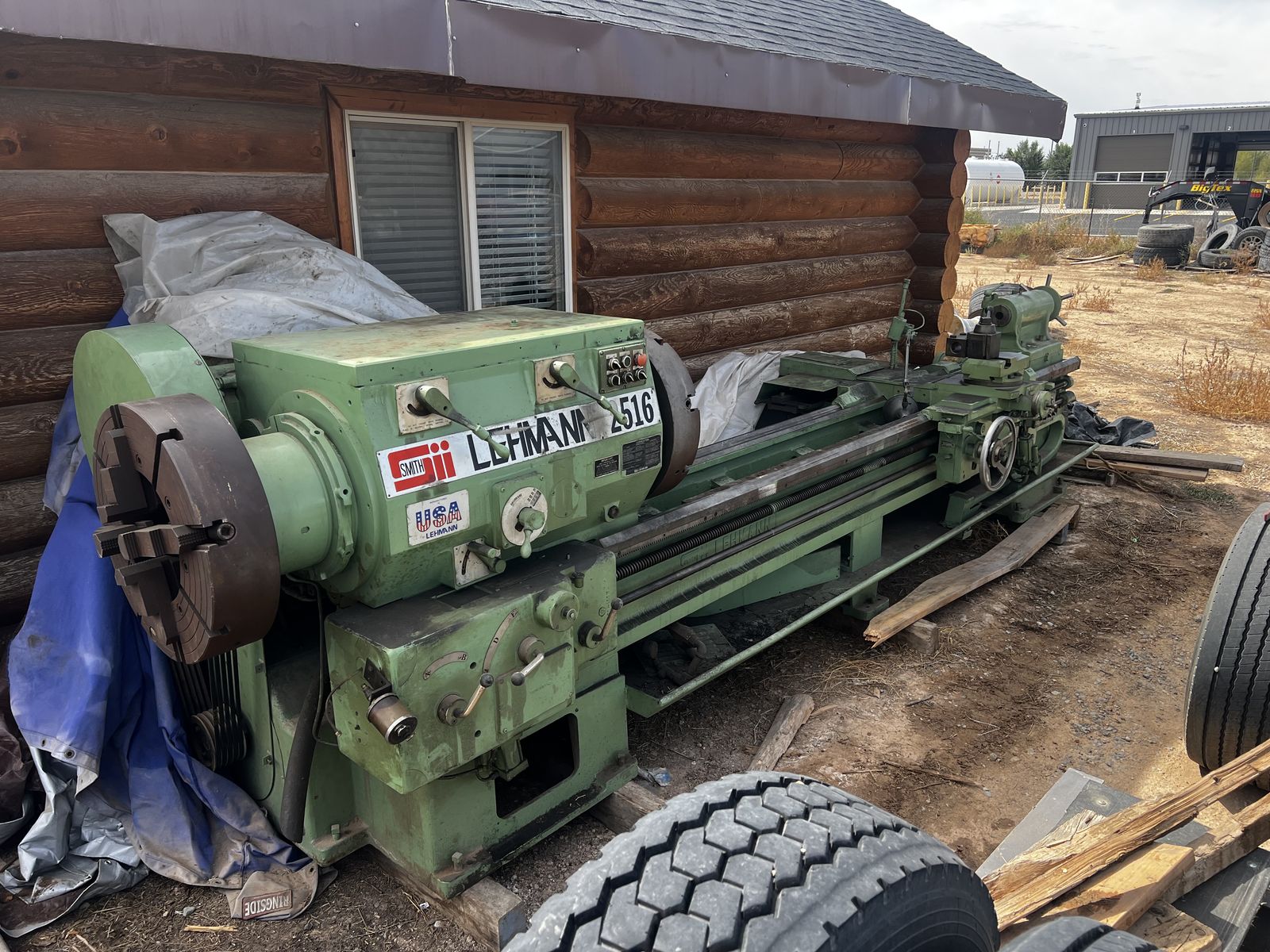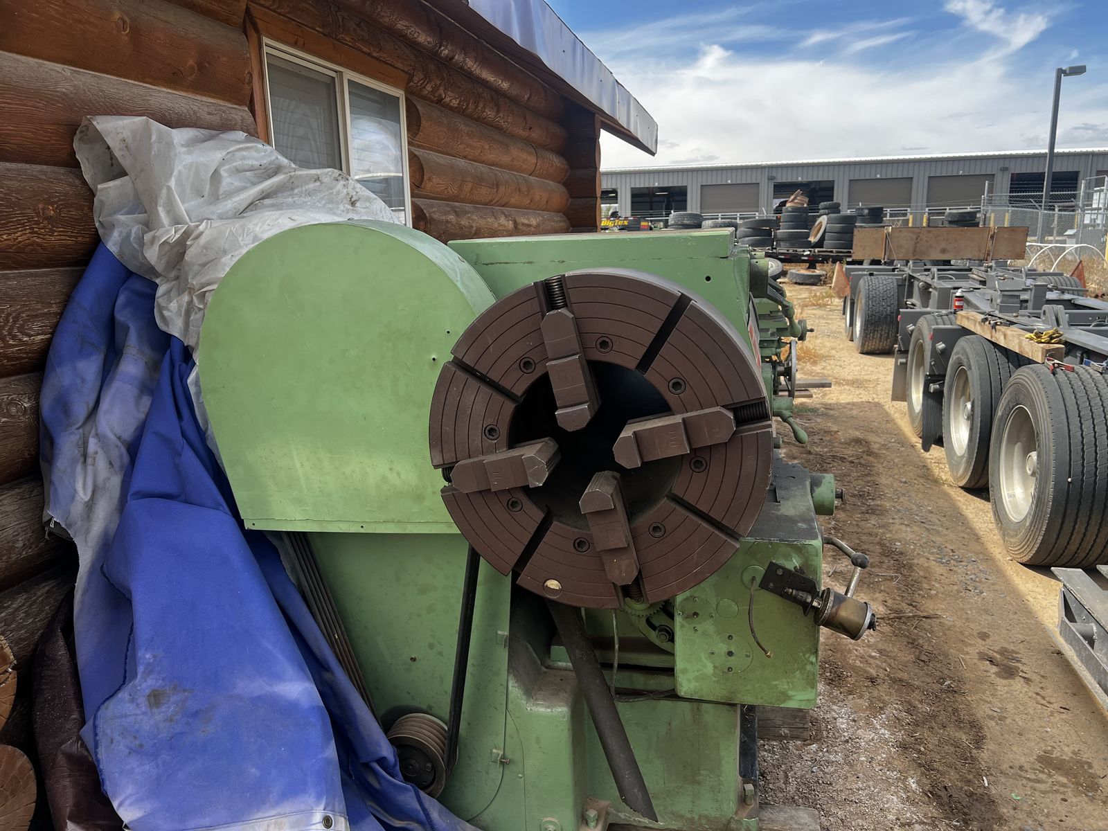Lehman lathe 12" id for each chuck. hollow spindle lathe, dual 4-jaw chucks, taper attachment