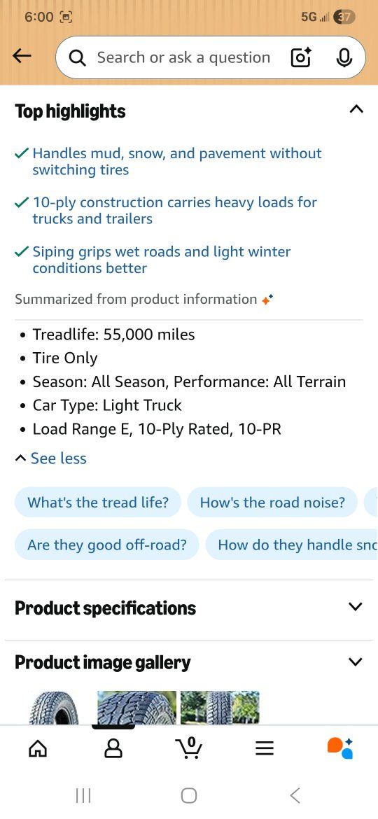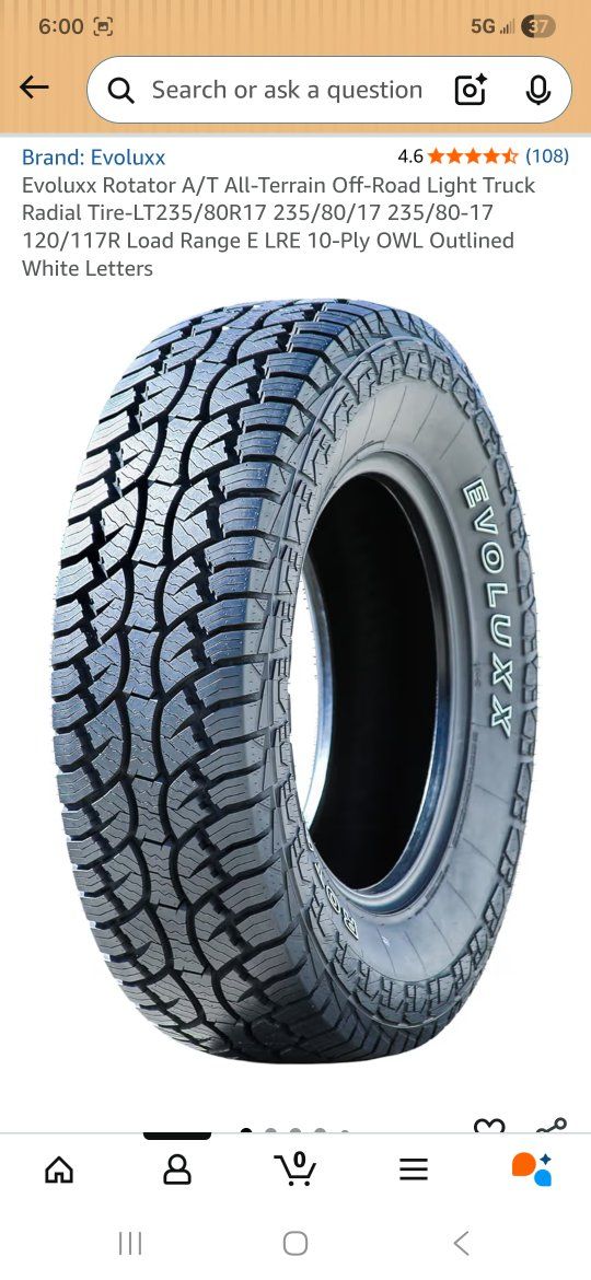 VenmoMy loss is your gain! I bought these tires new last year for a dually pickup truck I had recently purchased. Before the tires arrived to my house, the truck blew the motor and I had to get rid of it. So I dont need these tires anymore. 6 tires, load range E. These are an all terrain tire for mud sand and snow. 55,000 miles life expectancy. I paid $825, you can have for $775. They have been stored inside since I purchased them. Would prefer to sell all together so I wont be splitting them up for now.