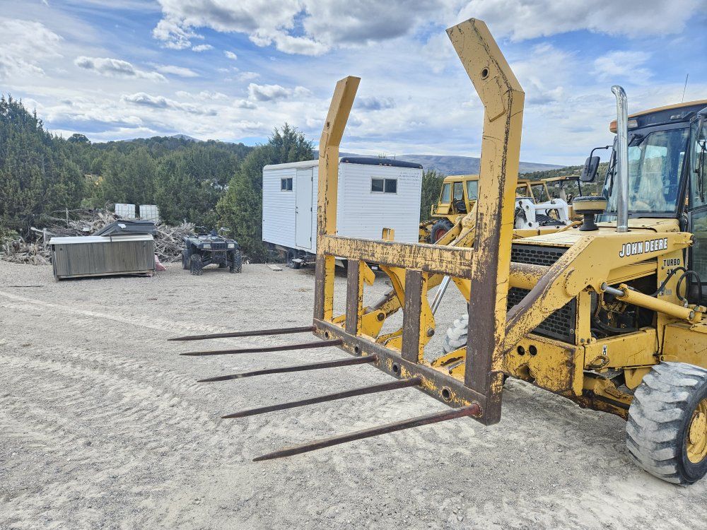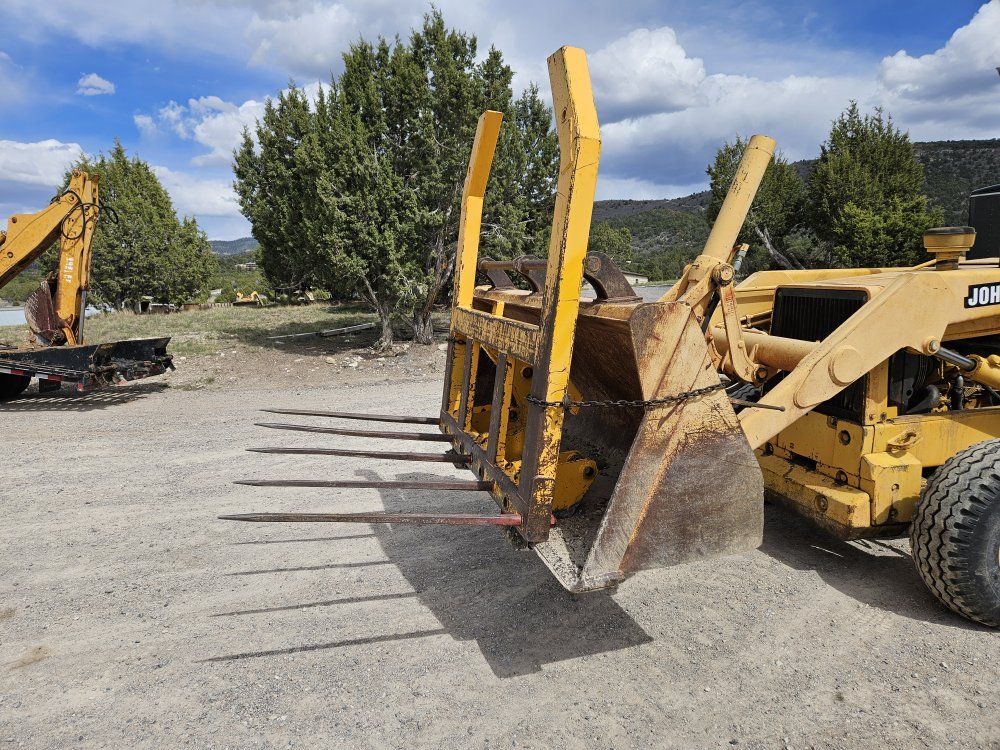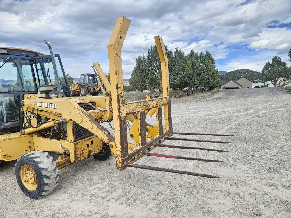 VenmoThis is a very heavy duty Universal 5 spear Bale fork manufactured to pin mount to John Deere backhoes and also has cutting edge lip channel so you can use this with any backhoe bucket, secure it with chains, and you're good to go. It is 6 feet wide and the vertical supports are 6 feet tall as well. Can easily handle 2 bales. Has mounting holes for an additional 6 more spears if you'd like to add them. Even a couple holes for spears on the upper bale. Currently comes with 5 spears. It is very sturdy, no cracks or damage. Ready to put to work.