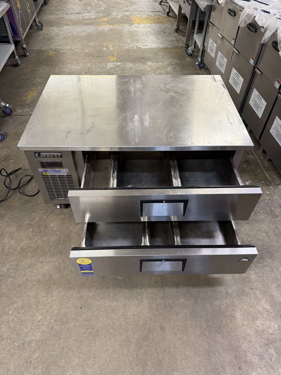 Used Everest 48” refrigerator chef base in excellent working condition 115 volts with wheels for easy moving
