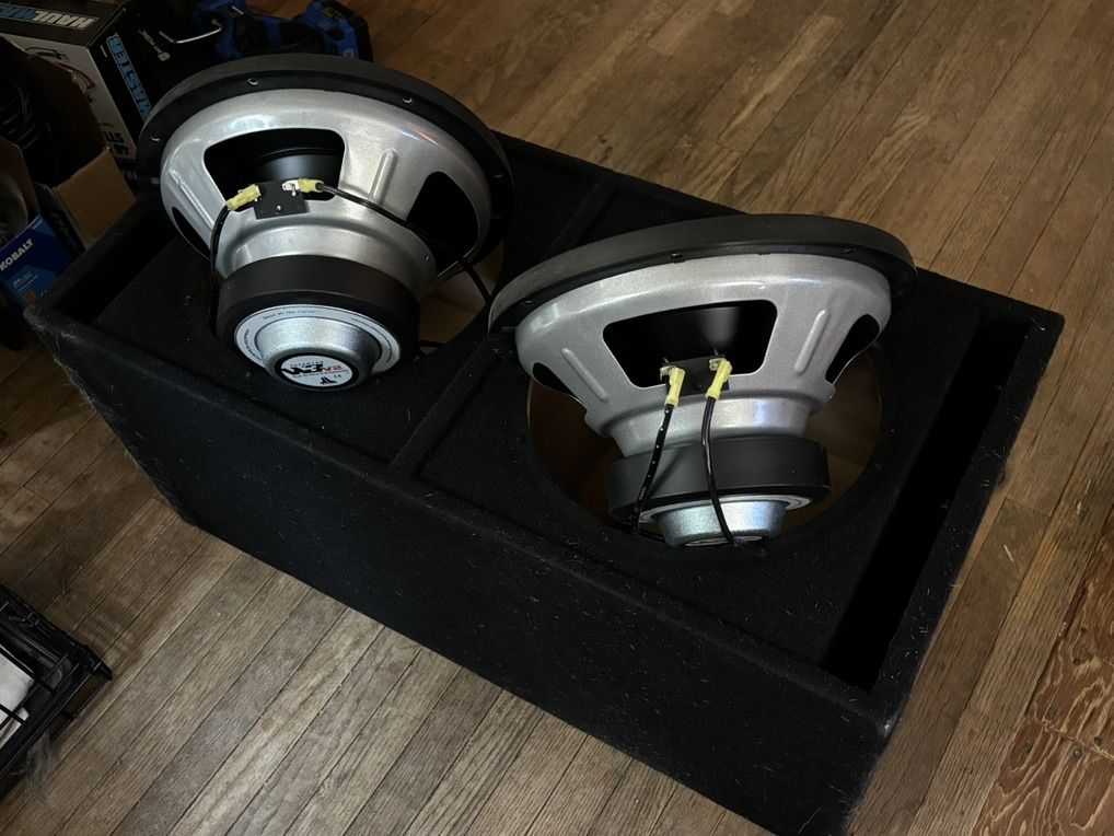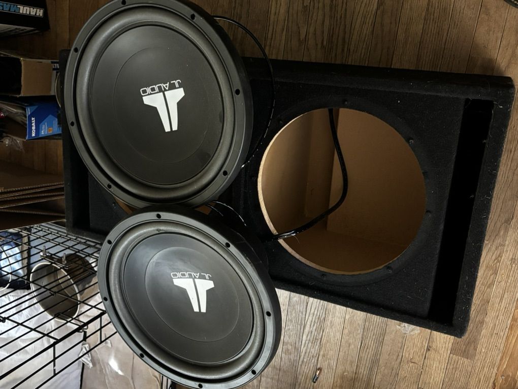 Two 12 inch JL Audio W3V2 subs in custom-designed ported enclosure.