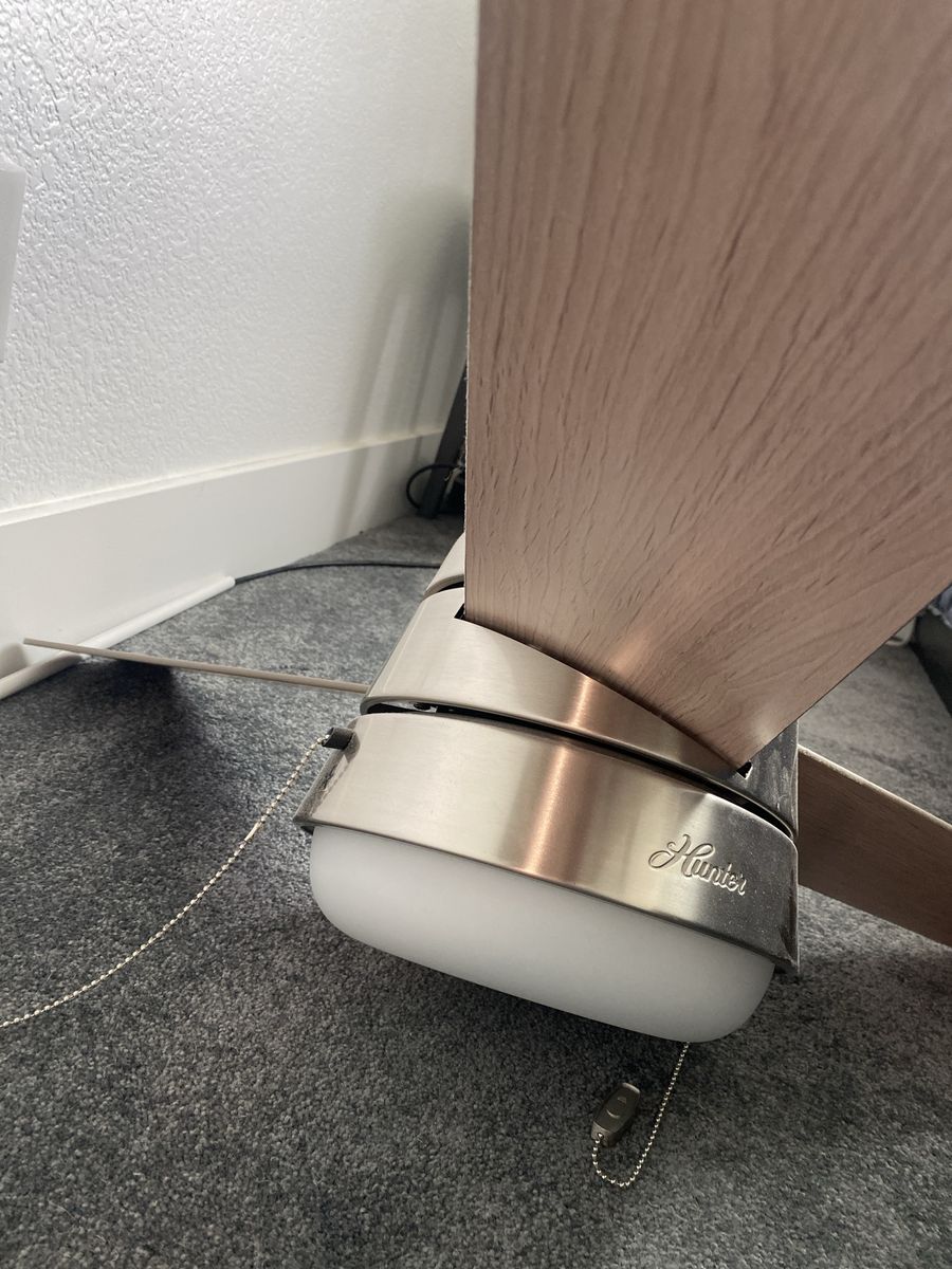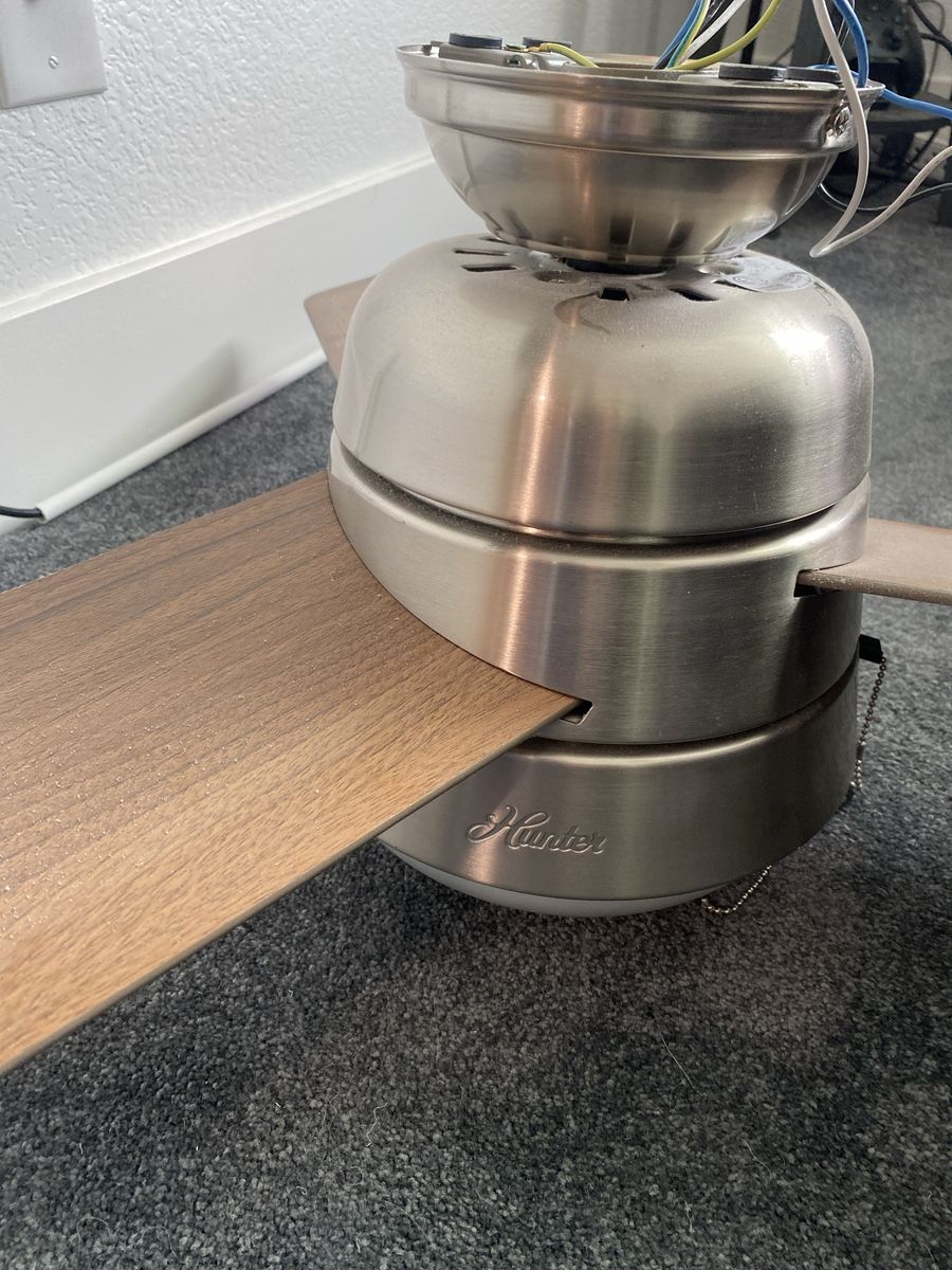 Venmo36 inch Hunter ceiling fan- works great, just pulled it down this morning. 3 speed with light. Darker brown blades on one side, pale brown on reverse side.