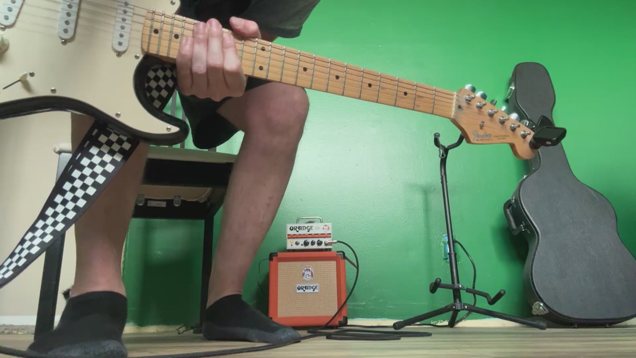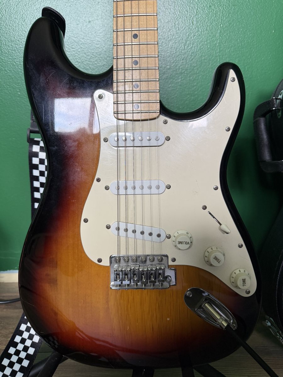 ZelleBought this in 2020 hoping the whole covid nonsense would force me to learn but alas I never did. Works great. Comes with the hard case, strap, stand, speaker and head, tuner and extra picks of varying thickness. The head has a headphone jack so you can play and not disturb people if needed. Video of crappy playing for fun factor but also so you know it works lol.