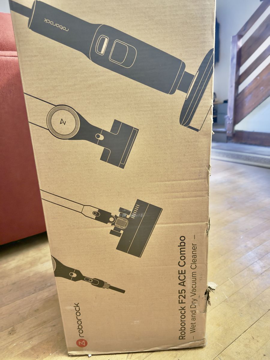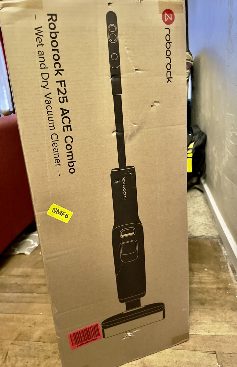 Brand new in the unopened box, roborock F25 ACE Combo 5-1 wet/dry vacuum cleaner. Slight damage to package (see pic), vacuum and contents not affected. I missed the return window due to being out of town for an extended period of time. Now I no longer need it. Retail price on Amazon $649-