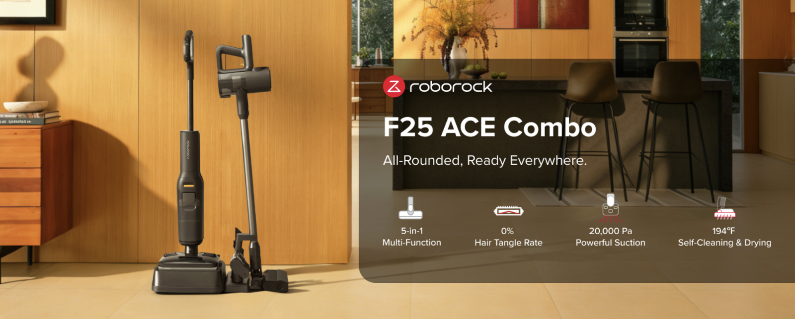 Roborock F25 ACE Combo Wet Dry Vacuum Cleaner, 5-in-1 Cordless Stick Vacuum Mop, Smart Hard Floor Washer with 180° Lie-Flat, AI Assitant Wheels, Self Cleaning, 65 min Runtime, Whole House Cleaning
