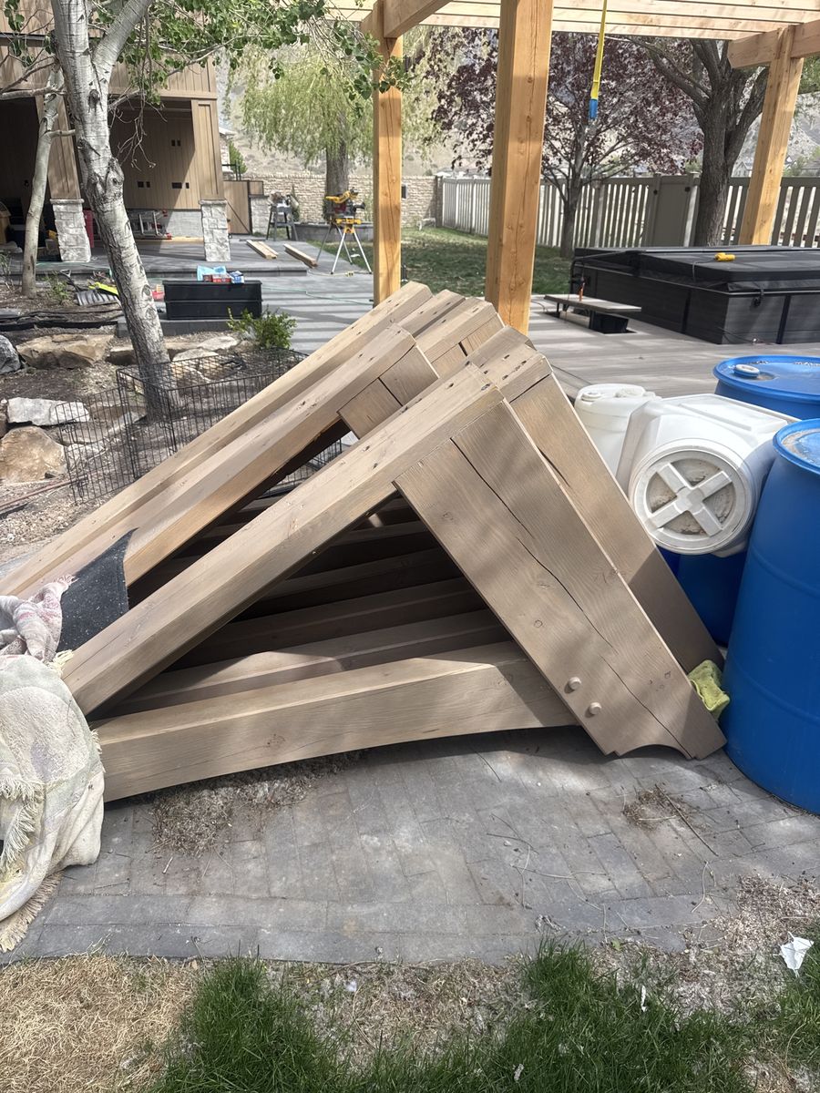 ApplePayNo scammers please 8”x12” beams 78” high 50” long with arch. We ordered them for an overhanging roof and ended up going another direction. I believe I paid almost $6k for all from carpenter. Make off.