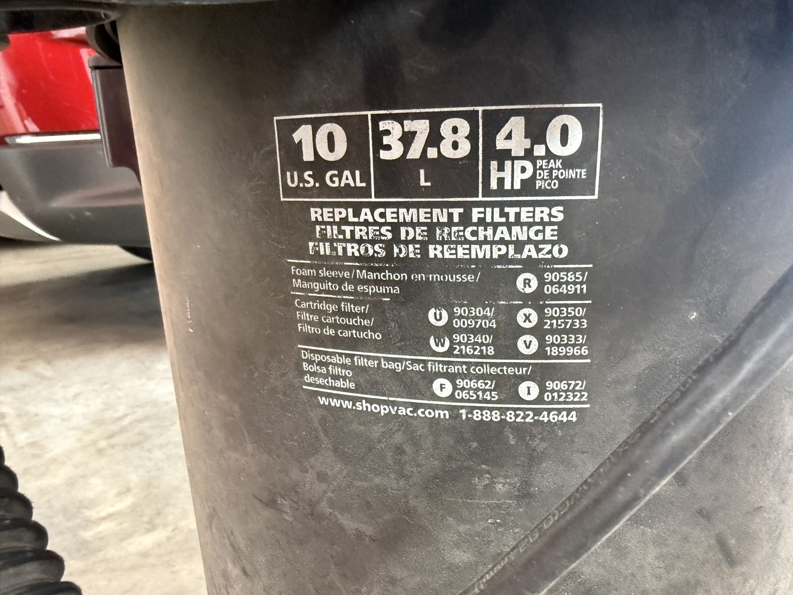 ApplePay10 gallon shop vac. No issues. Works great. 4 hp. Comes with the shown accessories.