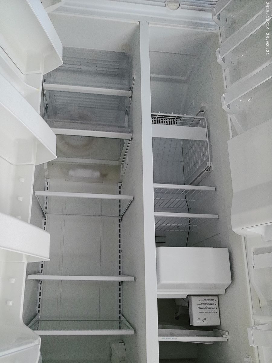Whirlpool 25 cubic foot Side by Side in excellent working condition. Tested, cleaned, ready to go. Water and ice dispensers