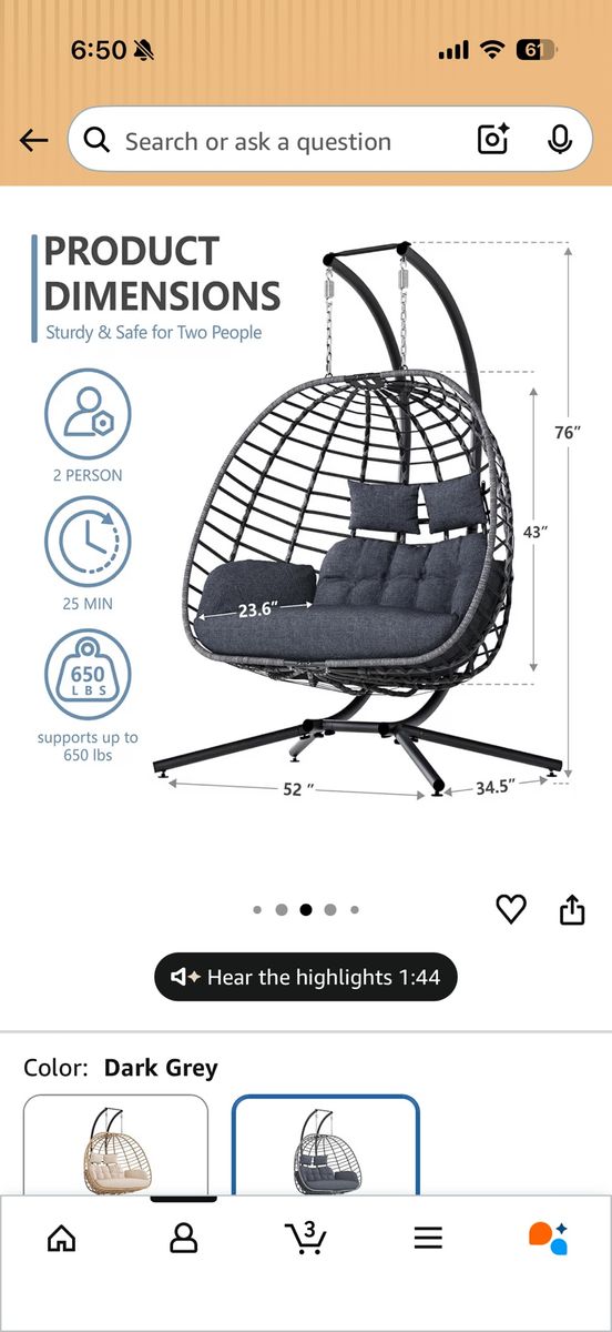 GooglePayI am trying to sell this never been open egg chair from Amazon. I bought it without measuring my patio and it does not fit and I cannot return it! Box has not been opened and I included the exact place I bought it on Amazon.