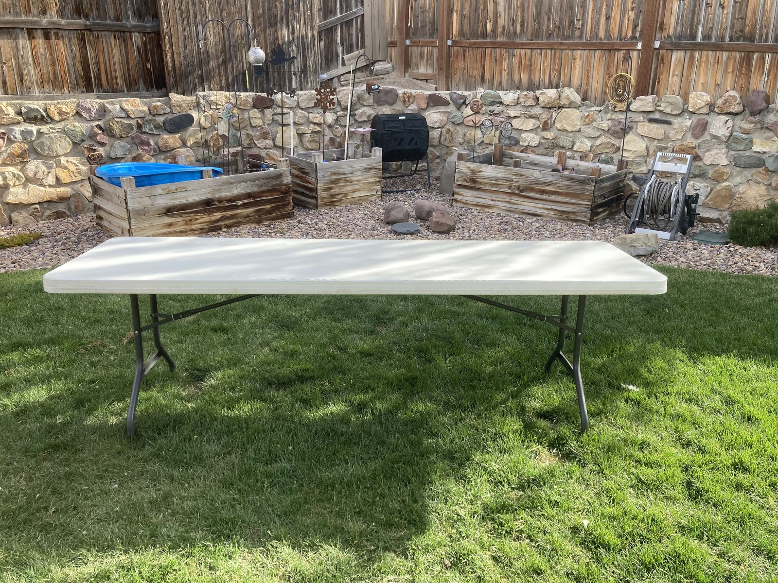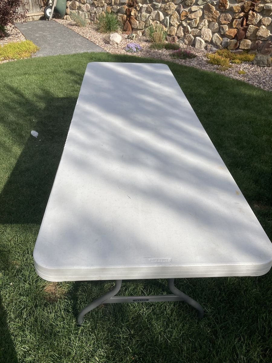 Lifetime table measures 96 inches x 30 inches with foldable legs. Text please, CASH only, pick up in Holladay area at Sprouts Grocery parking lot. Prices are firm and fair, please no lowball offers.