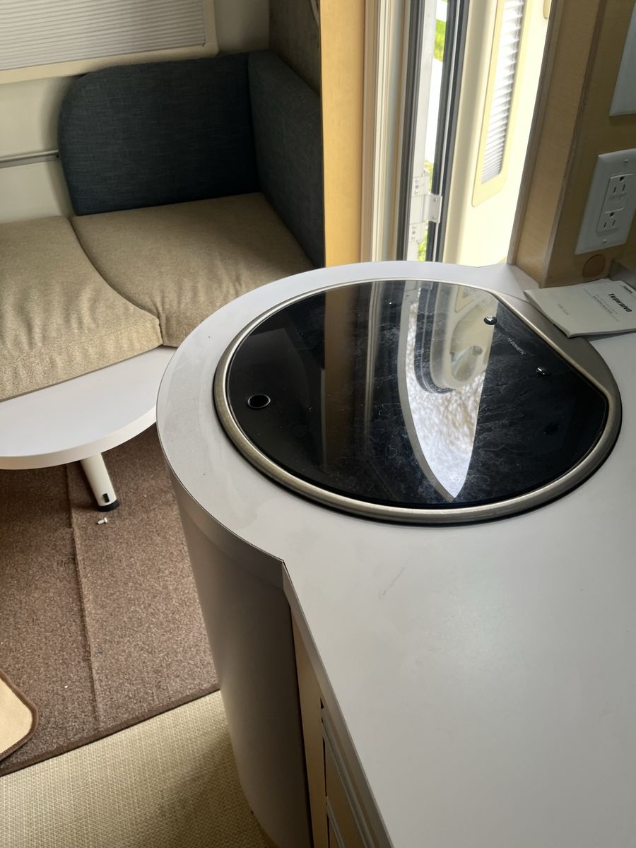 Used 2018 tab400 with solar. The TAB 400 is nuCamp RV's largest teardrop trailer, designed for extended camping trips and off-grid adventures. It's easy to tow and store, and features a single axle, composite flooring, and a rear stargazer window. Here's a quick overview of its features: Sleeping: A queen-size bed and a dinette that converts into a second sleeping area Kitchen: A sink, 2-burner glass-top stove, and a 2-way or 3-way fridge Bathroom: A spacious wet bath Climate control: Alde central heating and hot water system, plus central air conditioning Power: A 310 watt solar panel, 1200 watt power inverter, and 100Ah 12-volt lithium battery Storage: Plenty of storage space
