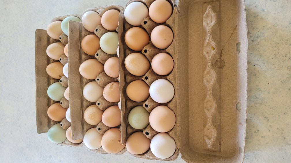 ZelleNutritious eggs courtesy of free range and cage free happy chickens. Unwashed eggs are harvested daily. Get yours for $6 per dozen. Pick up only.