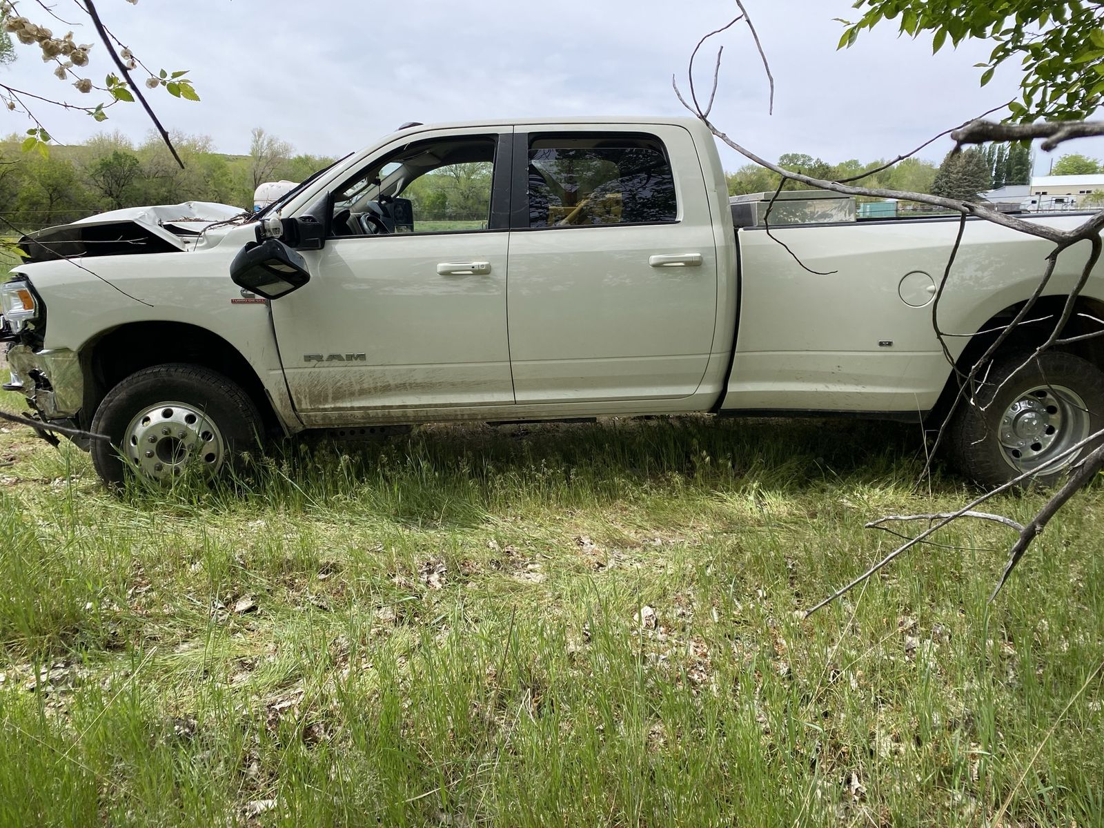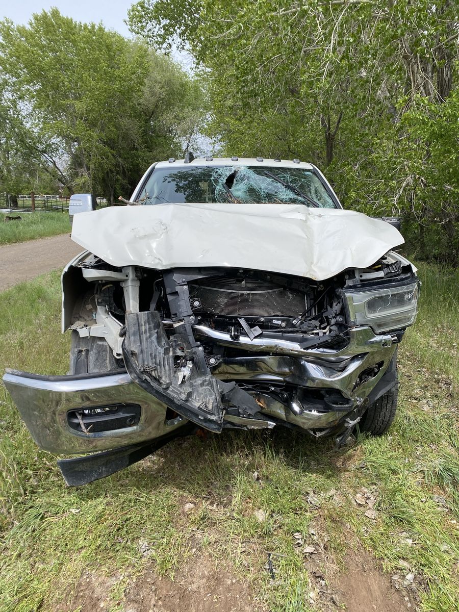 Wrecked 3500 Dodge Ram 52,000 miles. It does run. Title is clean, tires are in great shape. This truck is loaded, air conditioned seats, airbags, all the good stuff. Looking to sell it whole. What you see is what you get. Delivery available within reason. Toolbox not included.