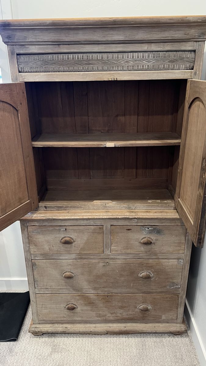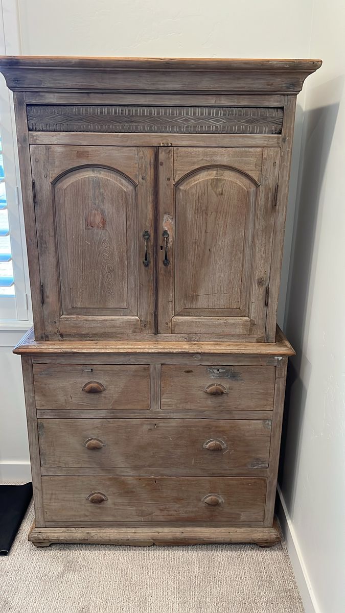 ApplePay38”x 15” x 68” $500 firm Two Piece Solid Hardwood european country/ farmhouse 19th Century English Pine Antique (Linen Press) (House Keepers Armoire) Authenticity not yet verified, priced accordingly