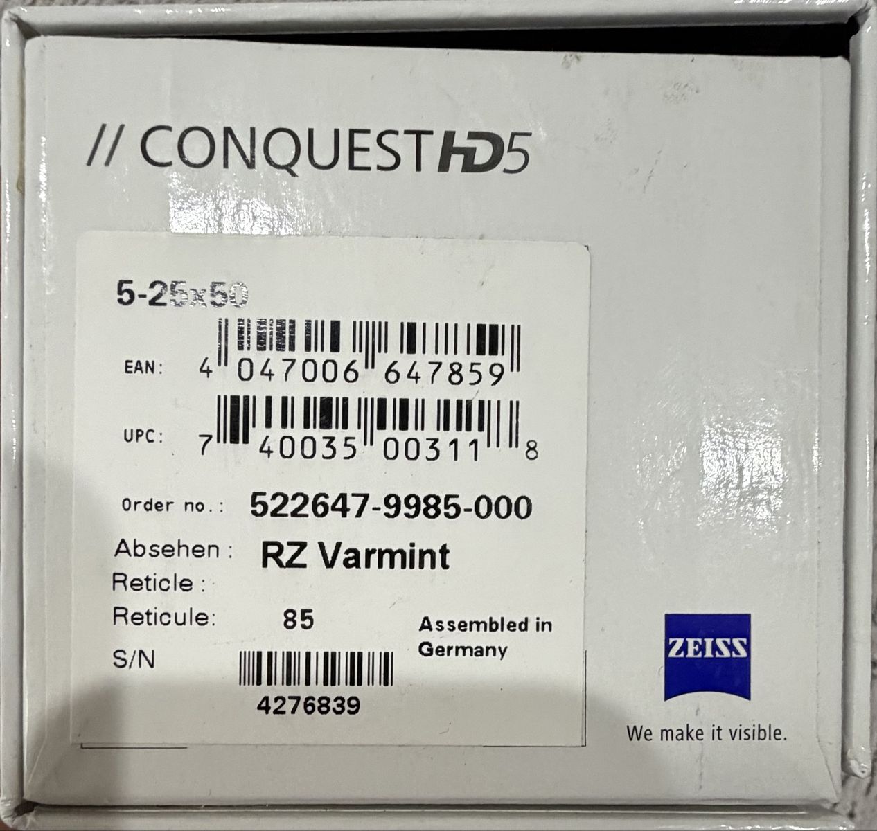 PayPalLike new Zeiss Conquest HD5 5-25x50 RZ Varmint reticle. Comes with butler creek scope covers.