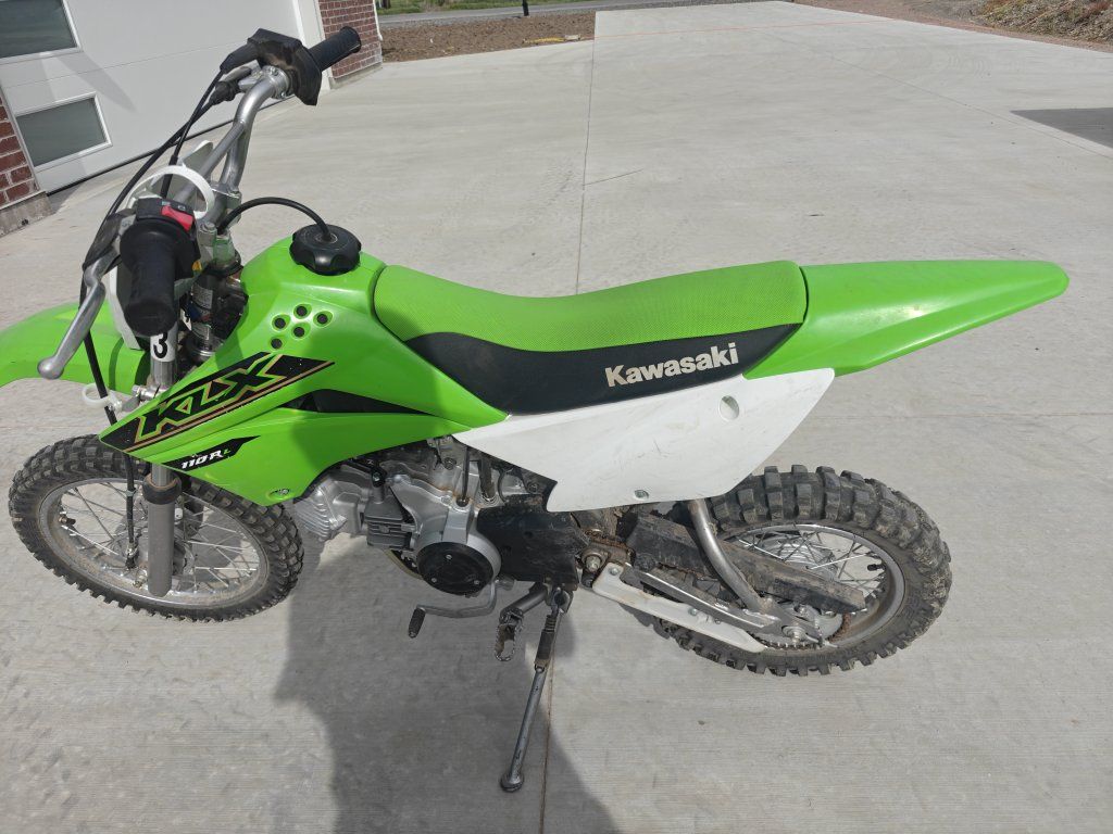 Features a 112cc, 4-stroke, air-cooled engine. Equipped with a 4-speed transmission with an automatic centrifugal clutch. Designed for off-road use with a high-tensile steel frame. Models like the 2021 KLX110R L feature longer suspension travel compared to the standard model