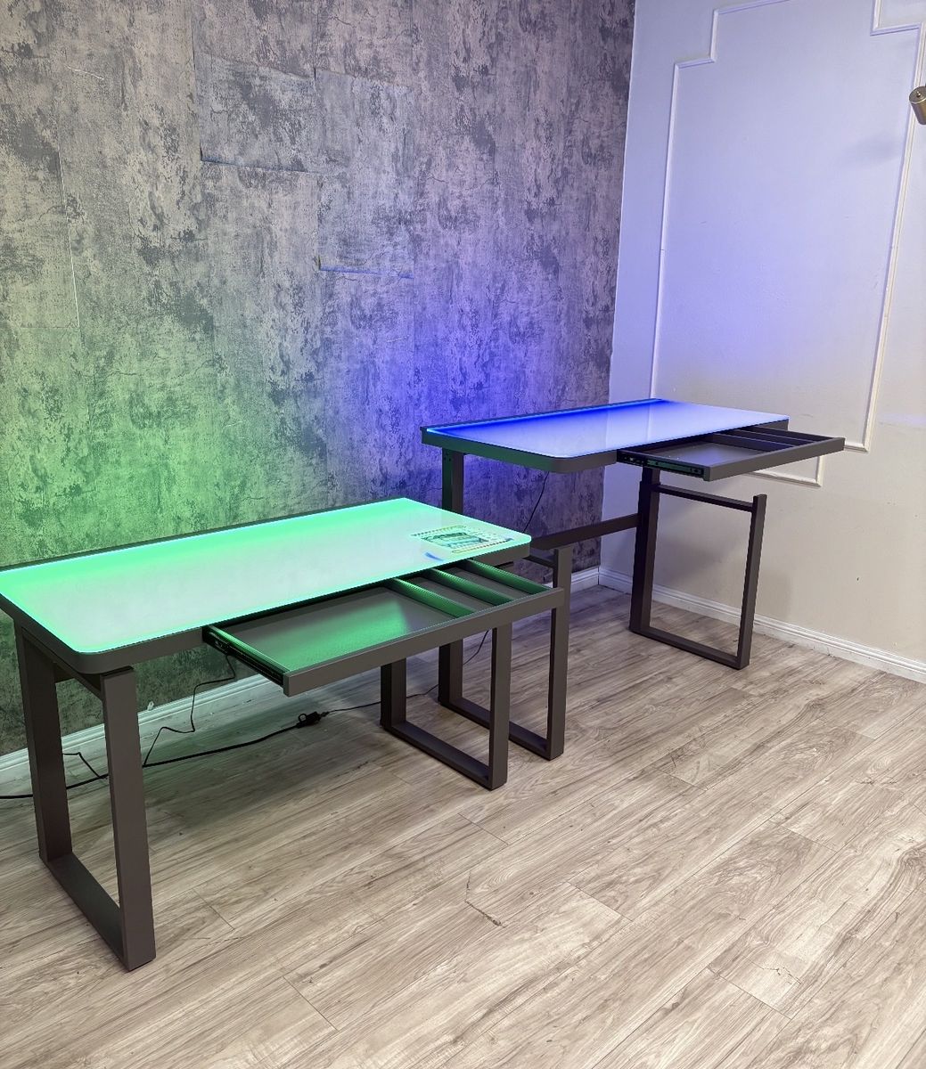 Multiple Lighting Options So many ways to display! Choose to arrange light from the front of the desk, the back of the desk, or turn off all the light options if the occassion calls for it.