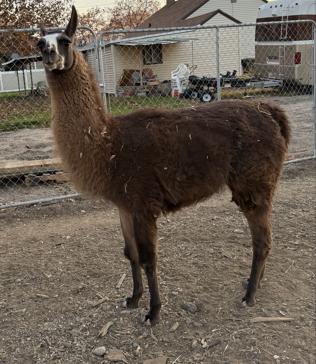 ApplePayMichelle is halter broke and loads in a trailer. She spent most of her life with goats. She has been with our herd for the past year and gets along fine with the other Llamas. She is not super cuddly but she will allow you to put a halter on her and lead her around the pasture or neighborhood.