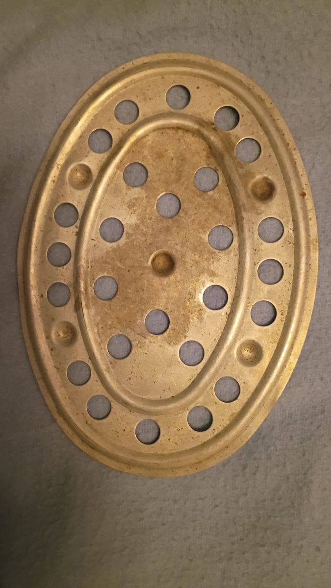 The one I have is in good condition. Please look at the pictures. The oval trivet is included.