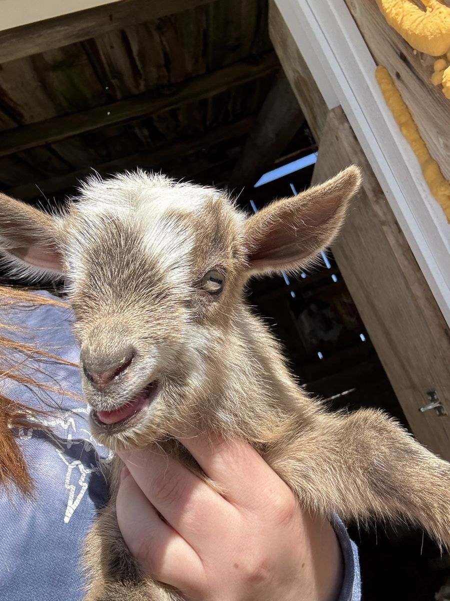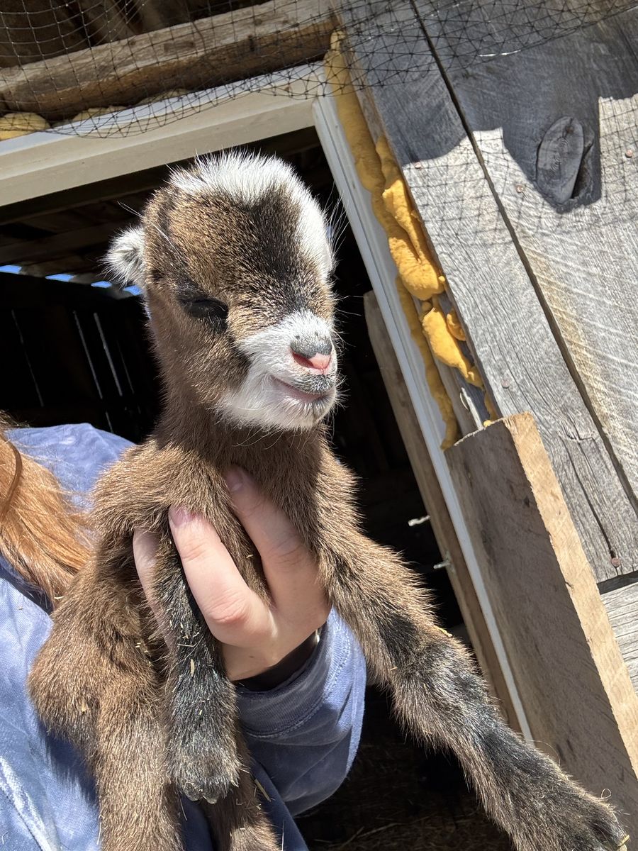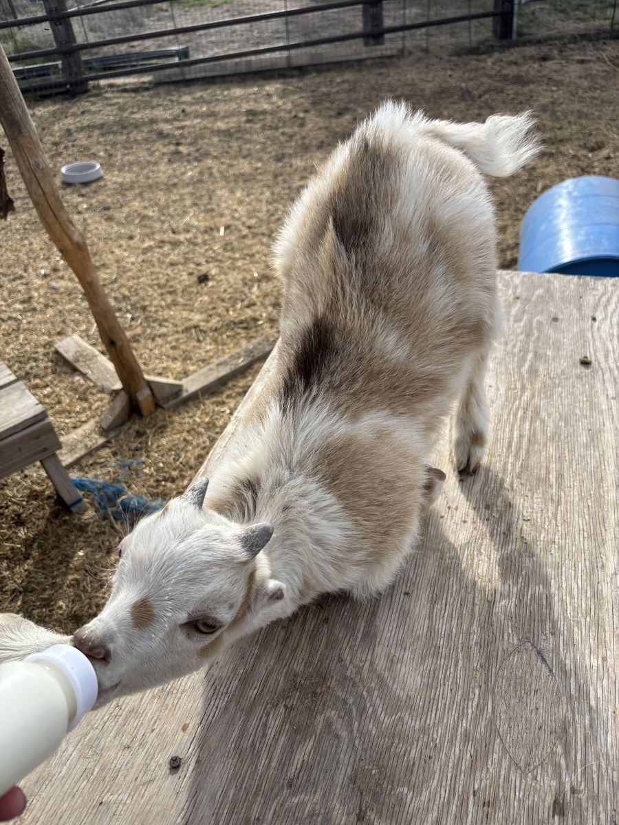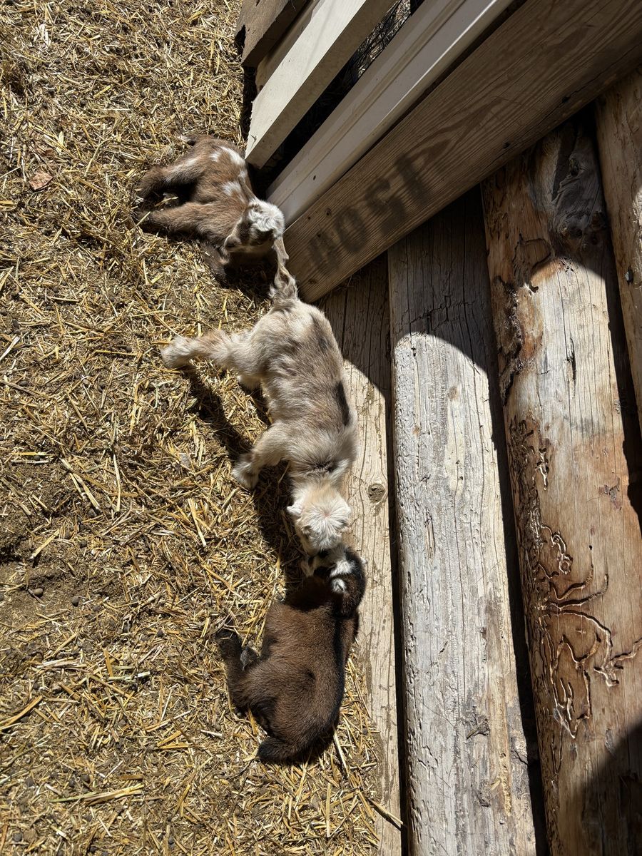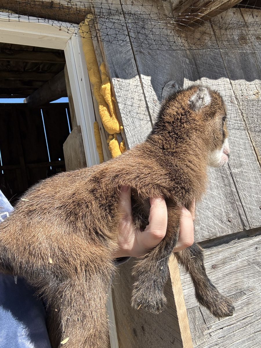 VenmoNigerian Dwarf/ Lamancha Dark Brown no ears- Doeling $100 Light brown ears- Doeling $100 White and Tan no ears- Buck $80 Or buy all three for $250 These cute babies are triplets, they are all super friendly and sweet, handled daily! I bottle fed the buckling. They are used to kids, dogs, and chickens. Momma is a Lamancha and dad is a Nigerian Dwarf. Momma is super well tempered with people and other animals and goats. They will be ready for a new and loving home April 28th! Born on March 3rd 2026