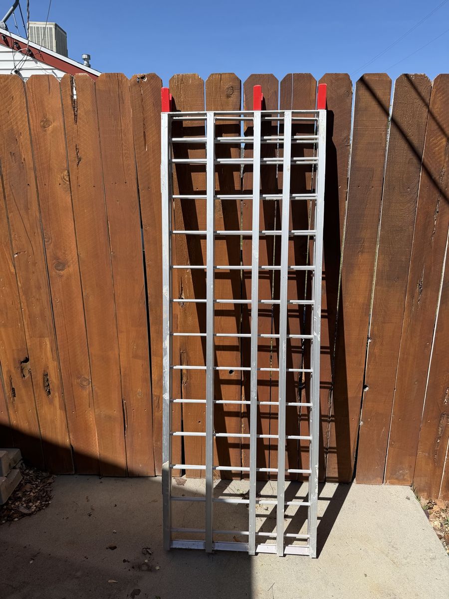 ApplePayAluminum bi fold atv ramp. Dimensions are 48” by 71” to the red tips.
