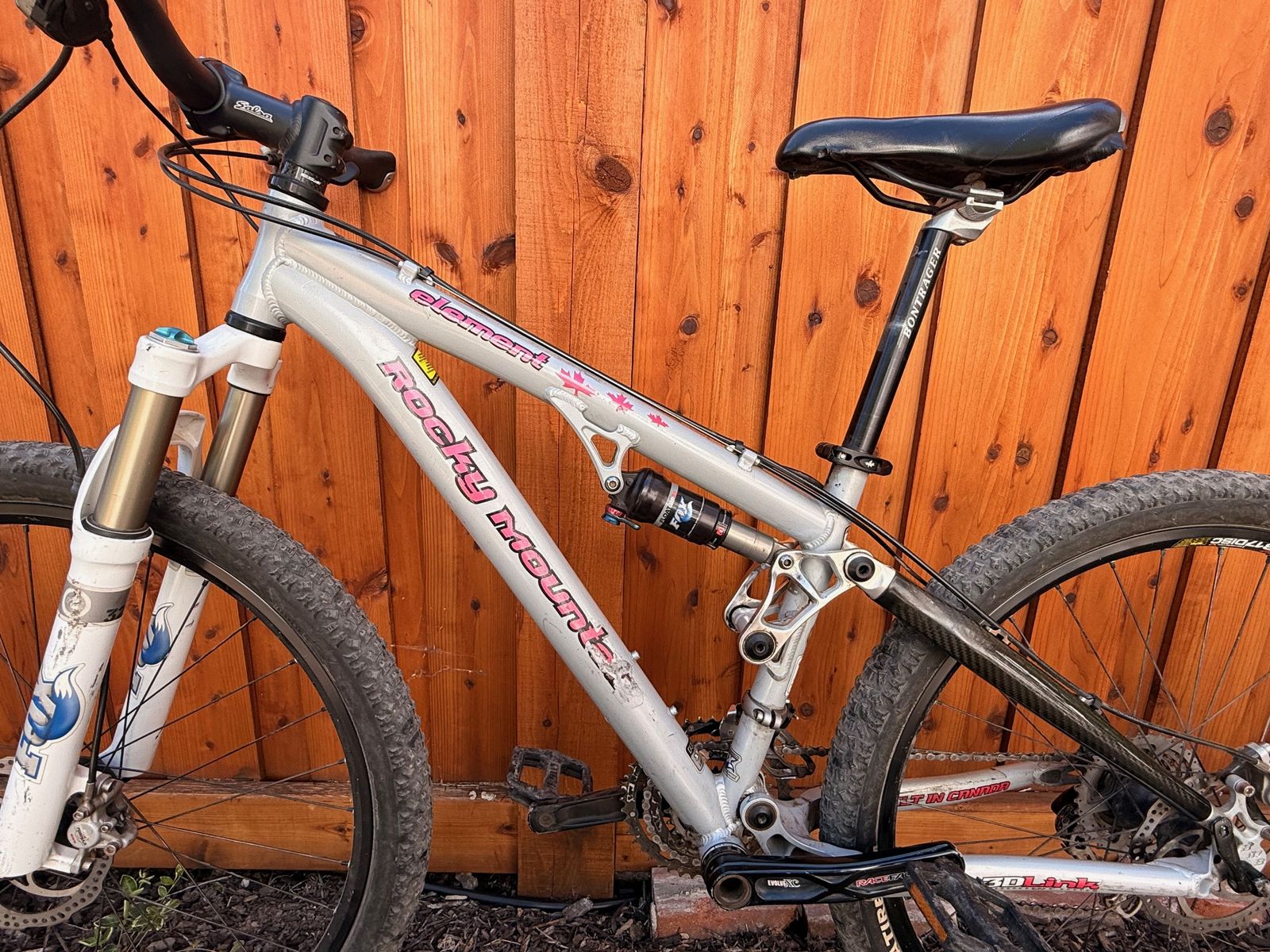 VenmoThis is a great Rocky Mountain L.O. (Ladies Only) bike. Perfect bike to start enjoying the trails. Has mostly stock components, nice Fox Float shocks that work perfectly. New brake pads, raceface crank set, Shimano XT rear / LX front derailleurs, Shimano LX rapid-fire shifters. 26" wheel, small frame size. Front wheel needs some rim tape or new tube, but overall the bike is ready to jump on the trails.