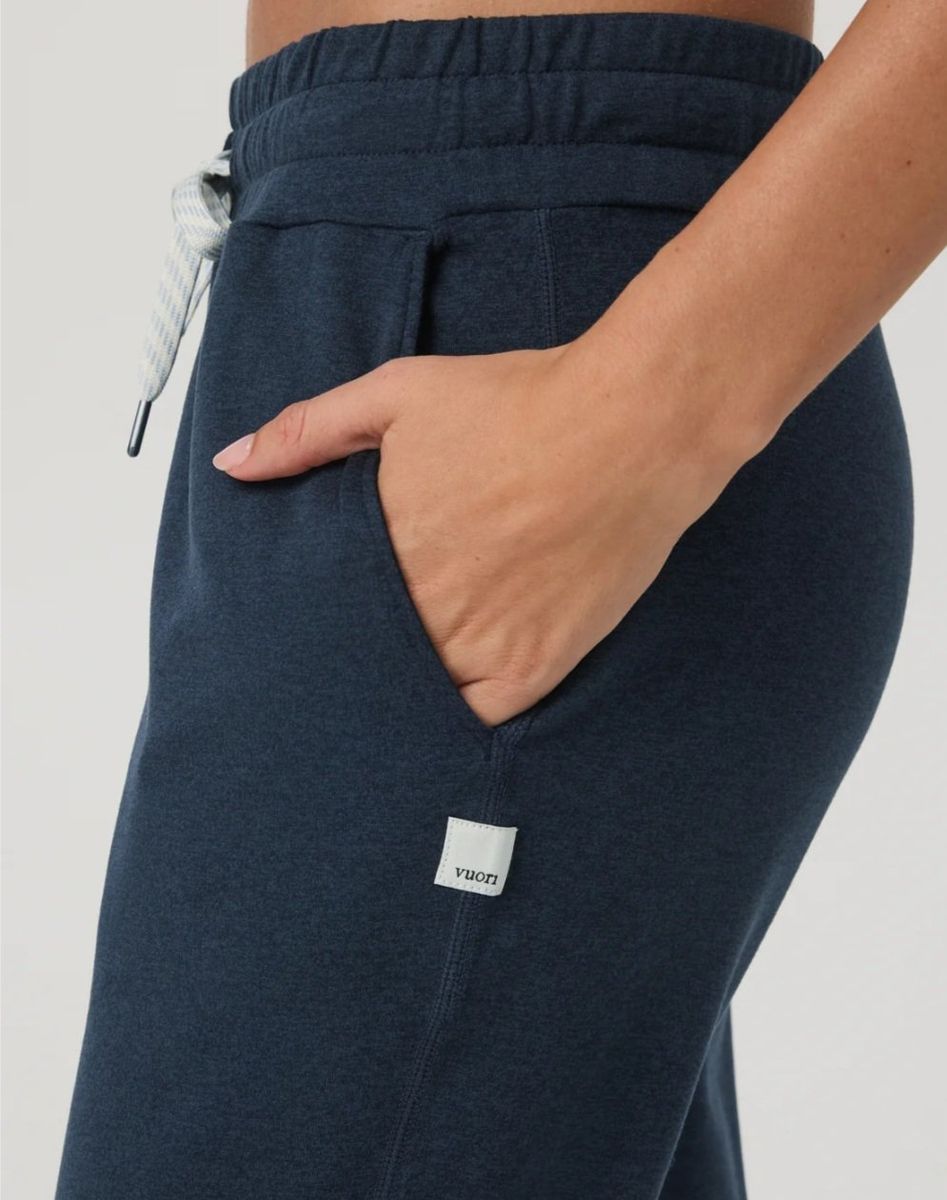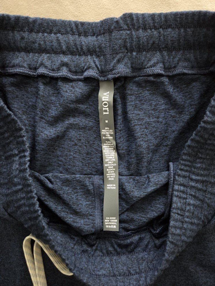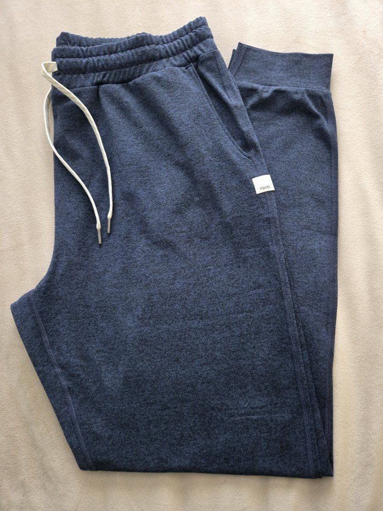 Currently sells for $110. Made with Vuori Dreamknit fabric that's super soft, moiture wicking, and has 4-way stretch These are the longer length with a 27.5" instead of the standard 25". Designed to be slightly cropped but this can give an ankle length if preferred. Great color in midnight heather. They rarely go on sale, unless a color is being discontinued. Asking $75 which is highly discounted for these pants.