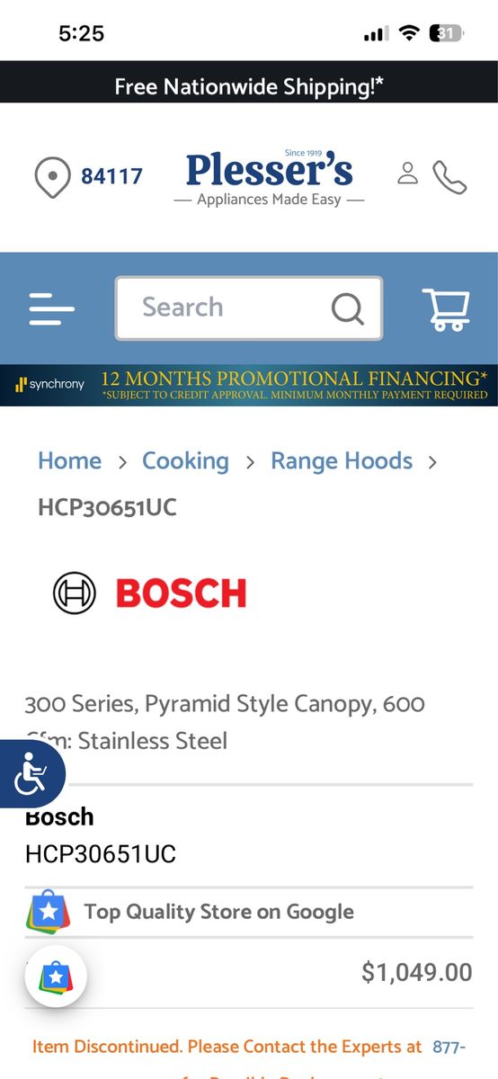 Bosch HCP 30651 UC range hood. New in box. Was $1,049.00, now $399.00