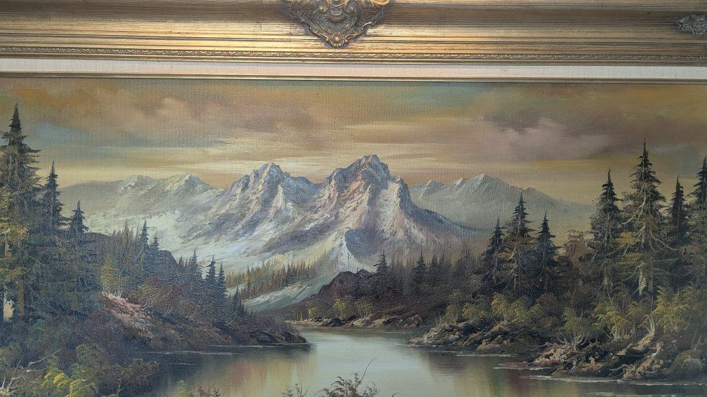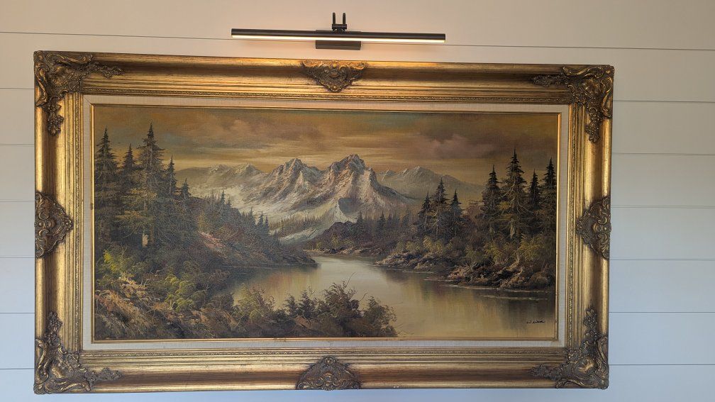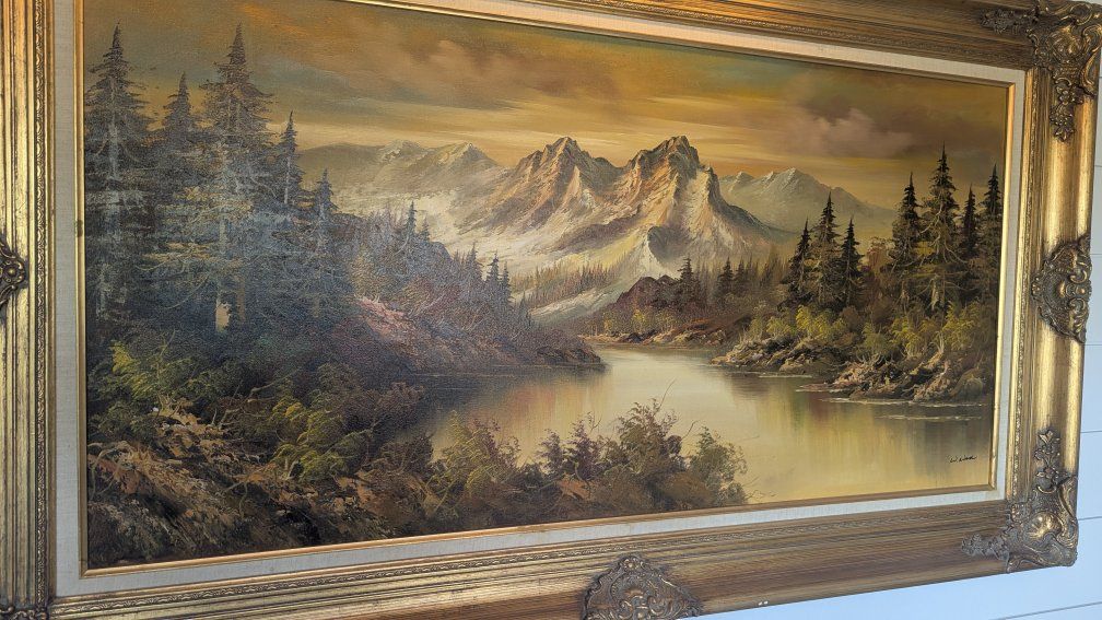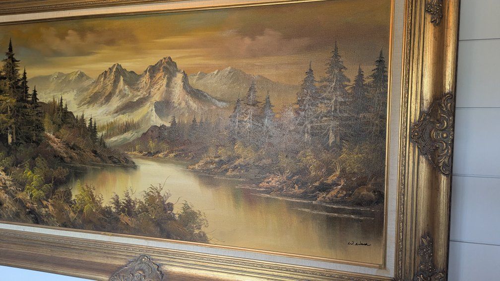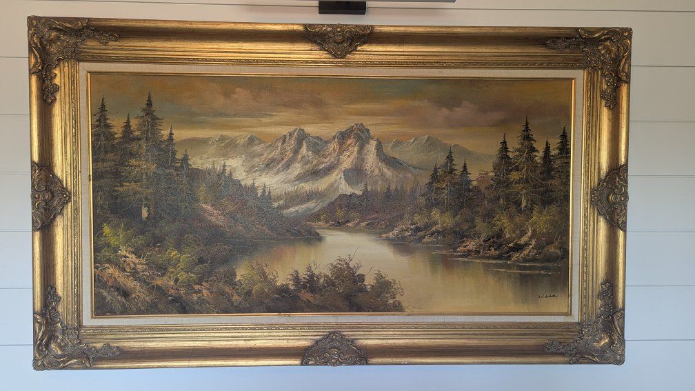 VenmoSelling this large antique gold framed landscape painting. It's a beautiful forest, river and mountain scene. Measures 34" x 57". Cash or Venmo only.
