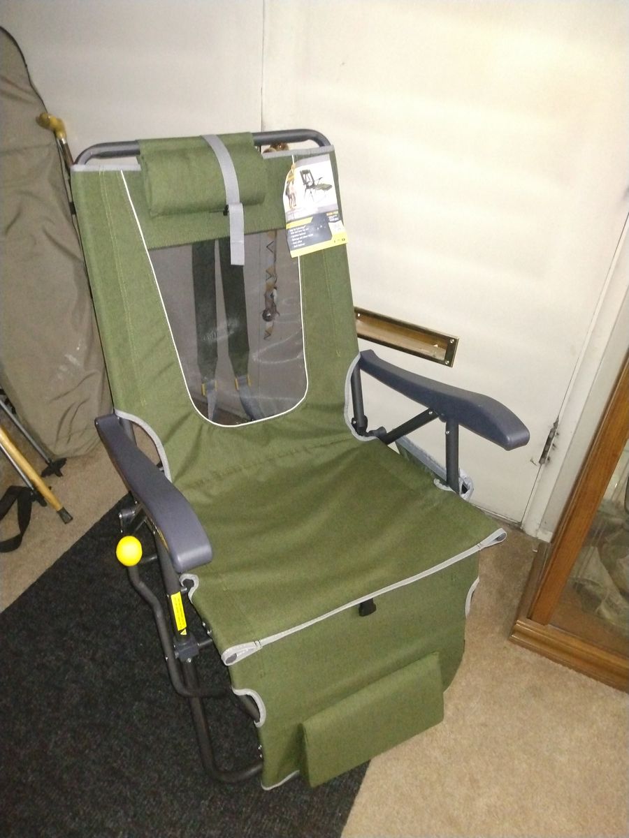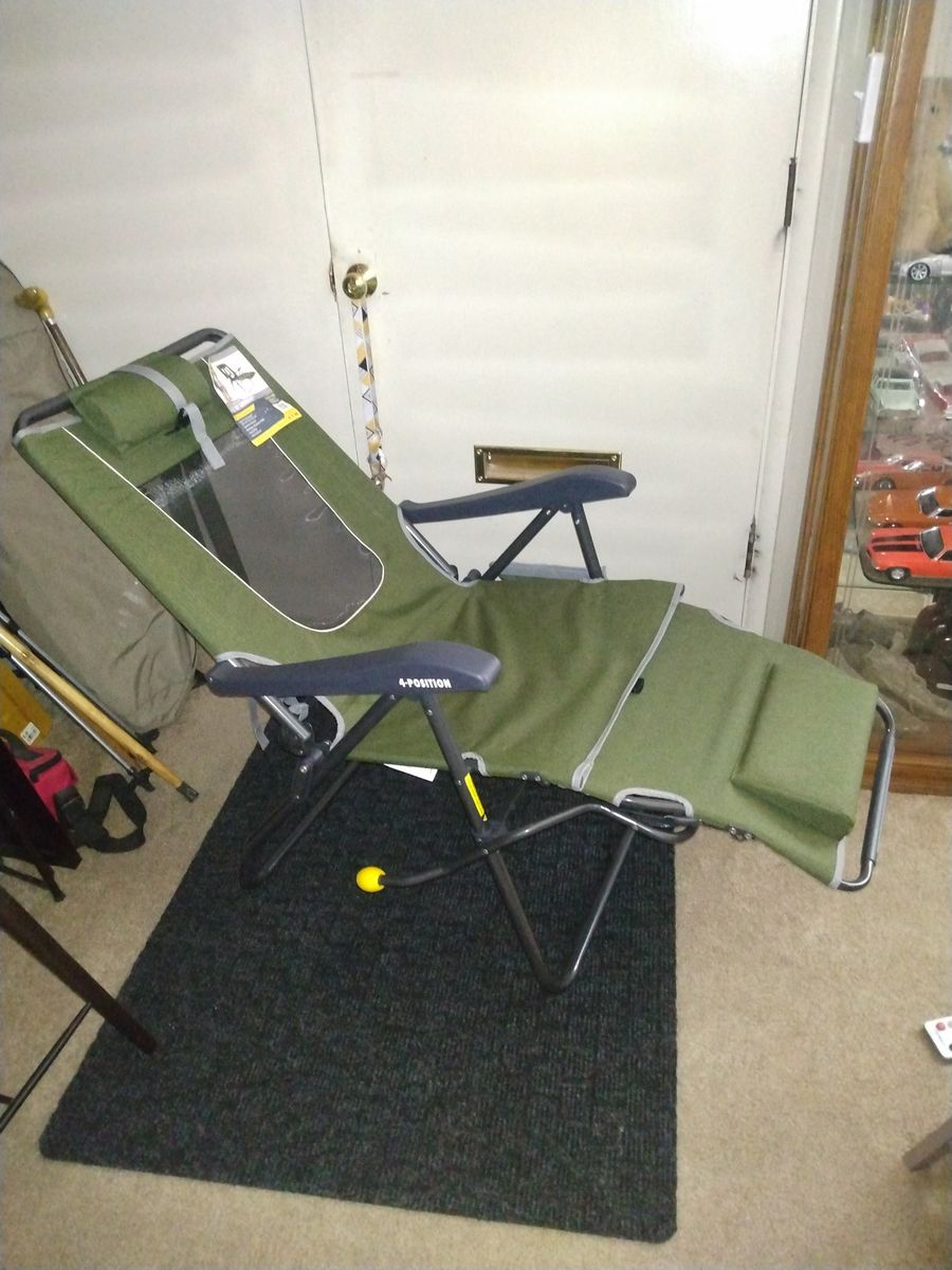 4 position adjustable outdoor lounge chair. Canbe carried like a Back pack.