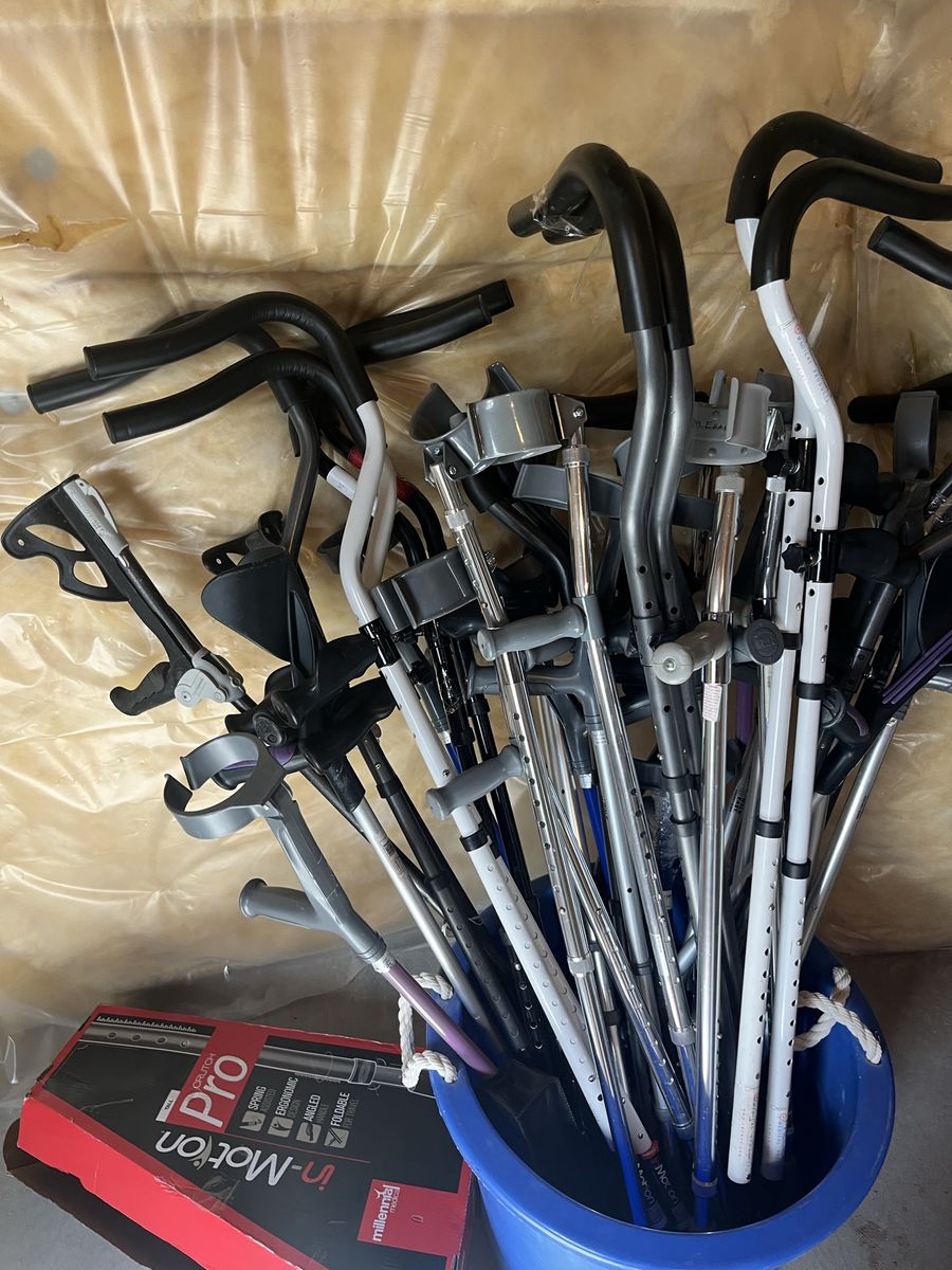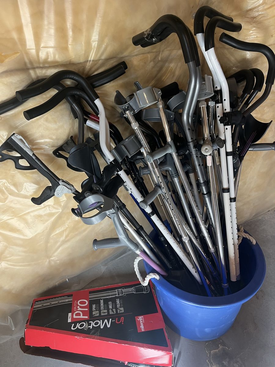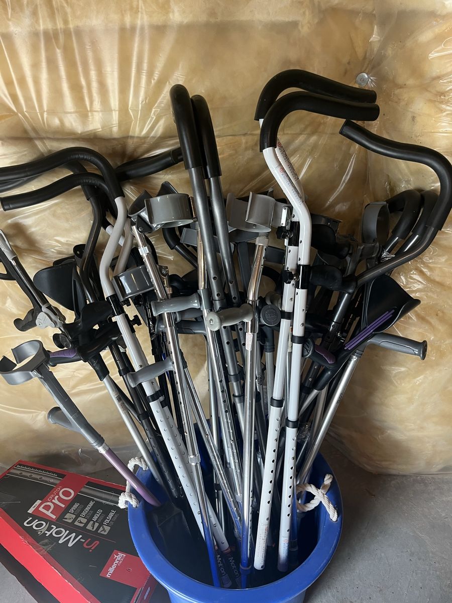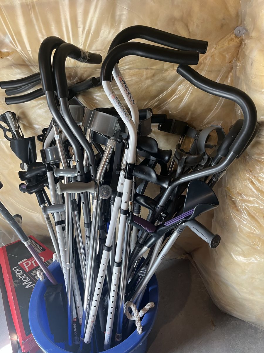 Close to 20 pairs of crutches, some with suspension, perfect for a side business, Clinic, or rentals