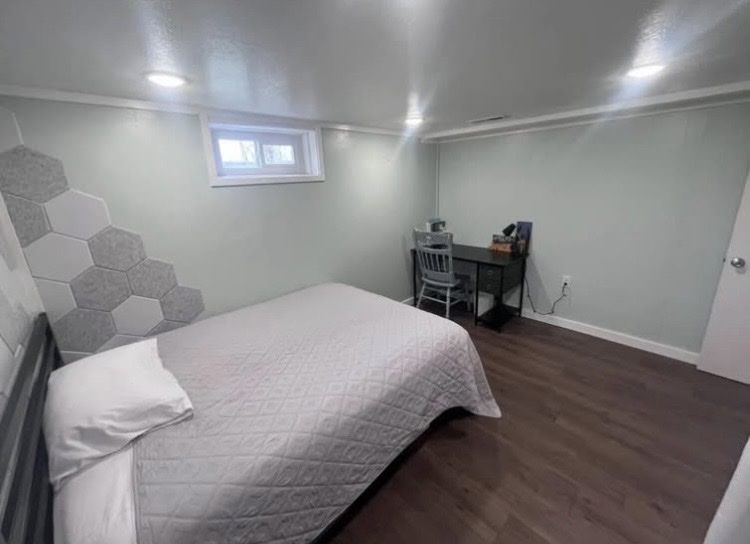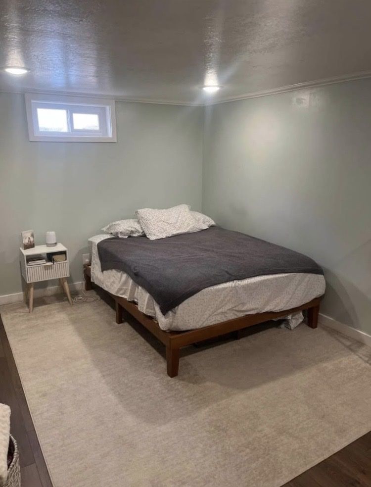 This is a basement apartment with all utilities included, no pets allowed. The attached garage also has a home gym that you can use. Less than a mile from Costco as well. The left side of the driveway is yours, fits 2 cars comfortably, 3 if they are nose-tail, I think there is also a street spot available as well.