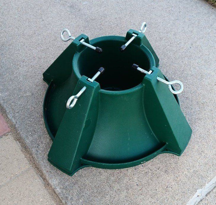 Base for a live/cut Christmas tree, holds water at the bottom. Take one or take them both.