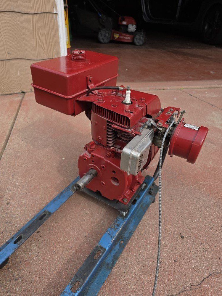 runs good, painted up nice with new decals, test stand not included. 1 inch diameter crank.