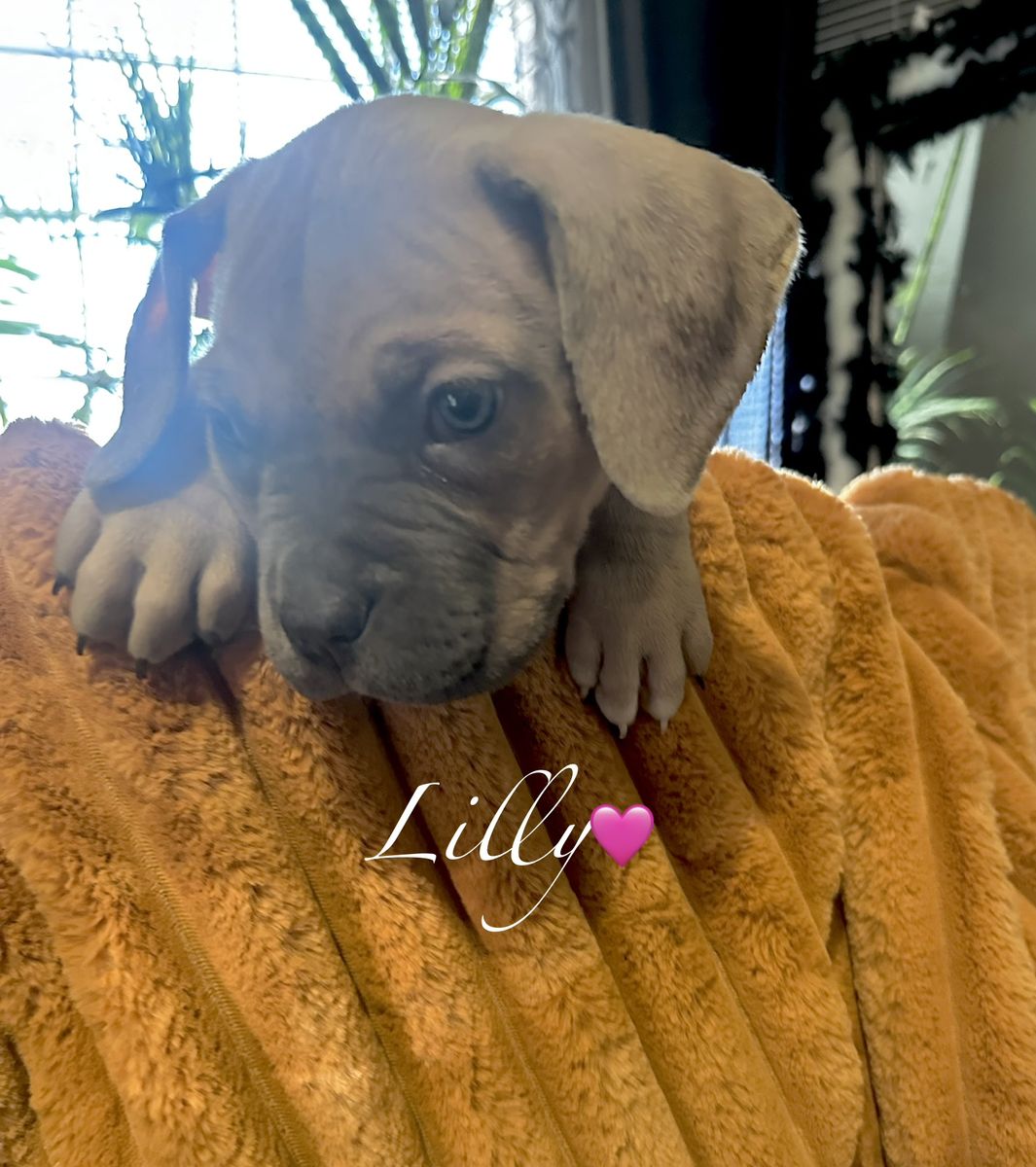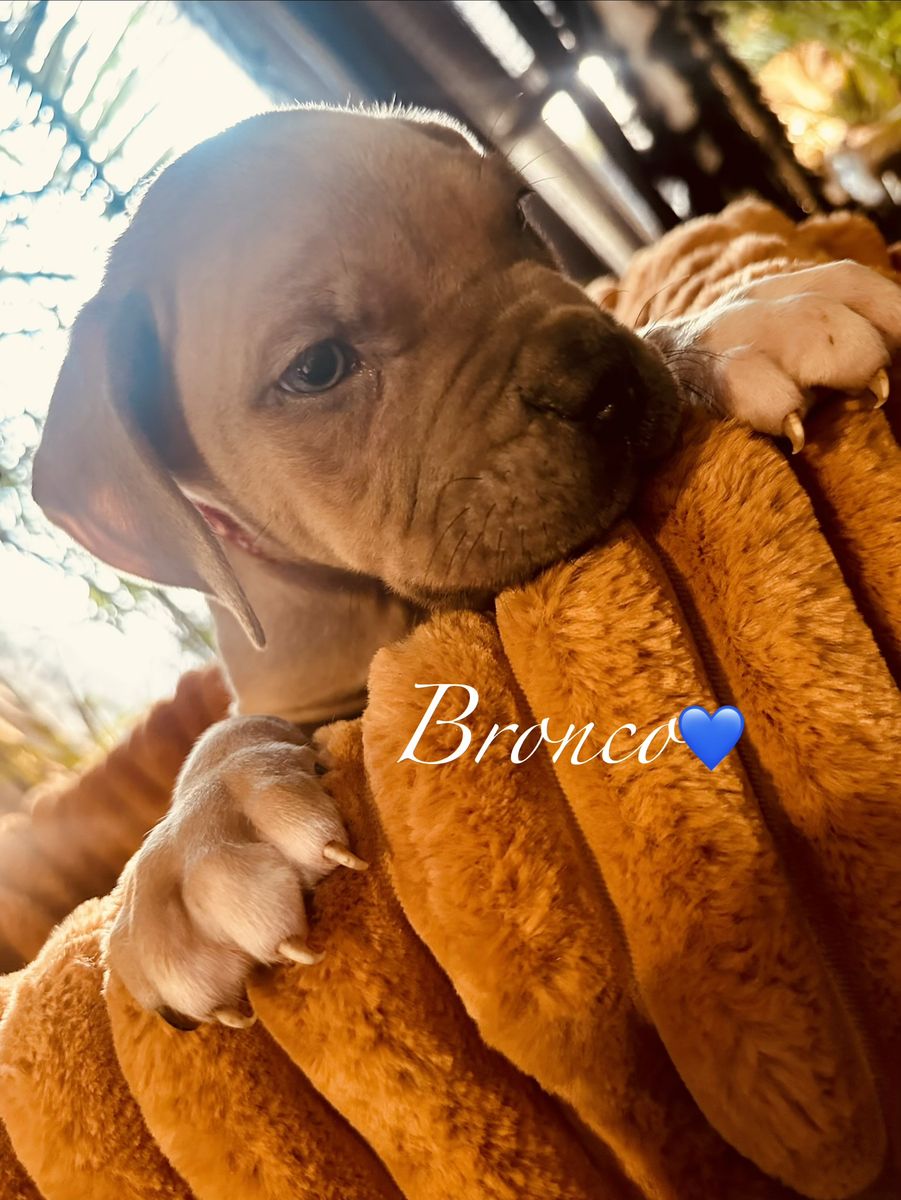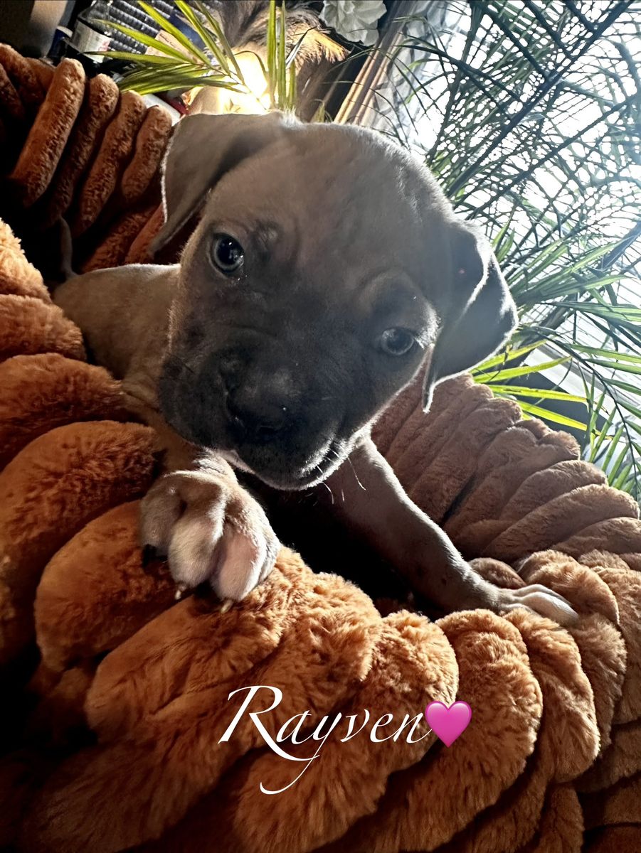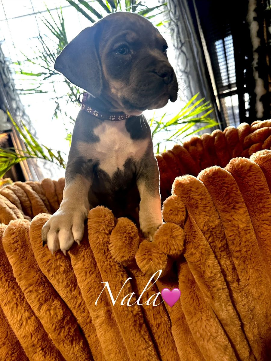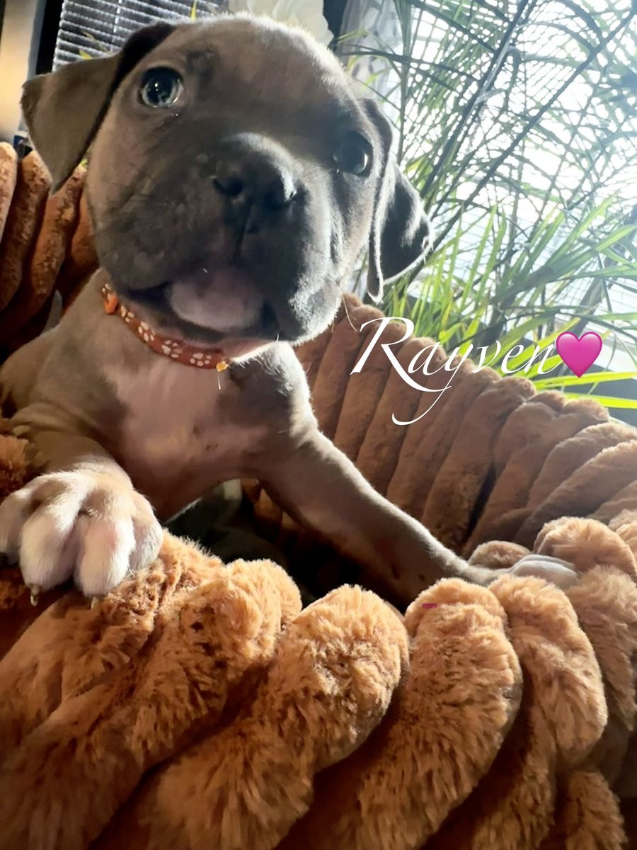 I have these perfect American Billy/Caine Corso puppies ready to go to their now forever homes; Mom is American Bully, Akc/Ukc registered. Dad is a Caine Corso also Ukc registered. Papers in hand for both mom and dad. I have 5 females And 3 males Females: Hunni, Lilly, Raven, Essence, and Patience. Males:Roque,Buck,Bronco. They all have different personalities that are so fun. They are all so egger and ready to go to there forever homes. They have been dewormed and first set of shots done. Come check these beautiful puppies out and fall in love with your new furry baby. Call or text