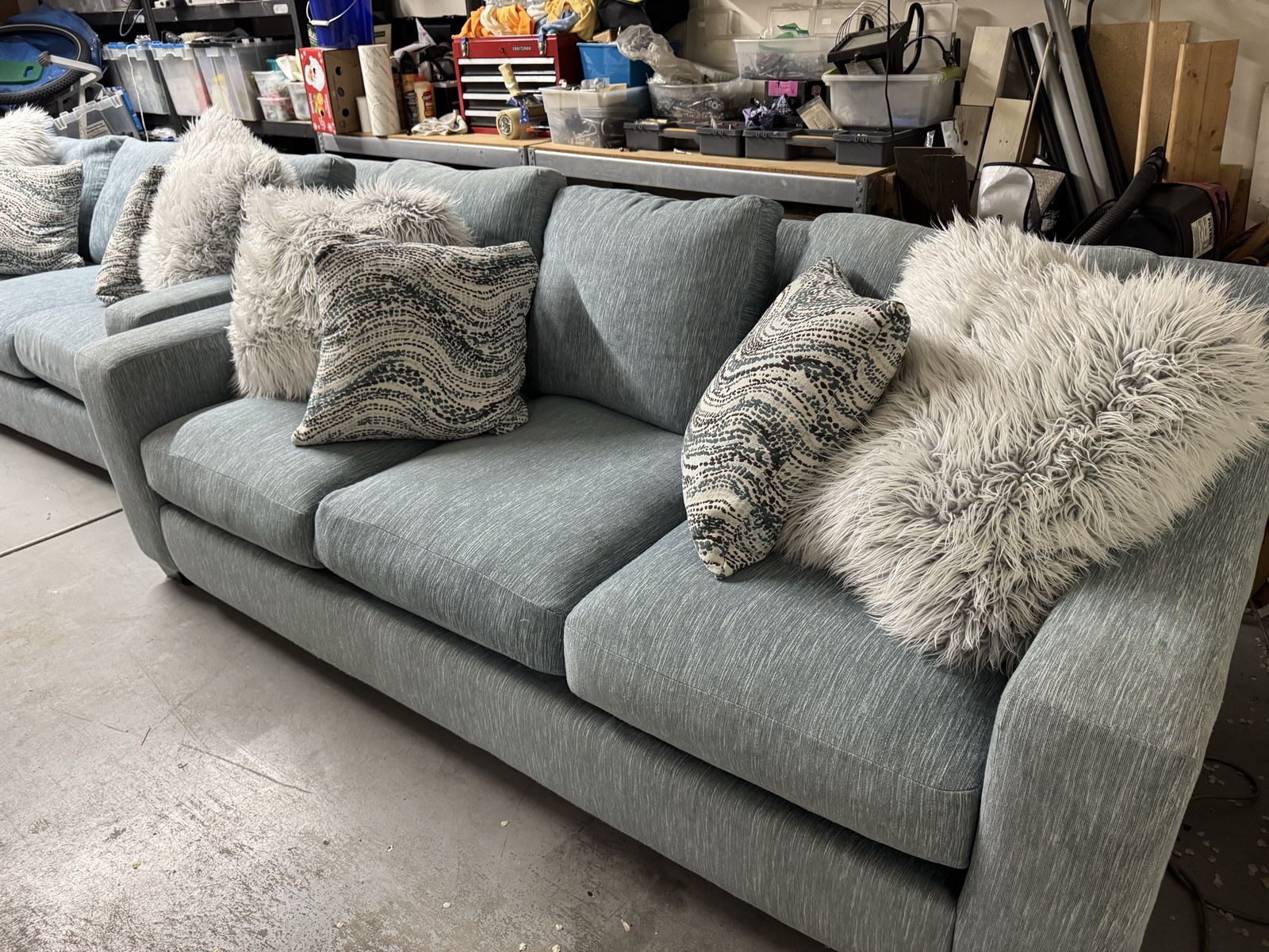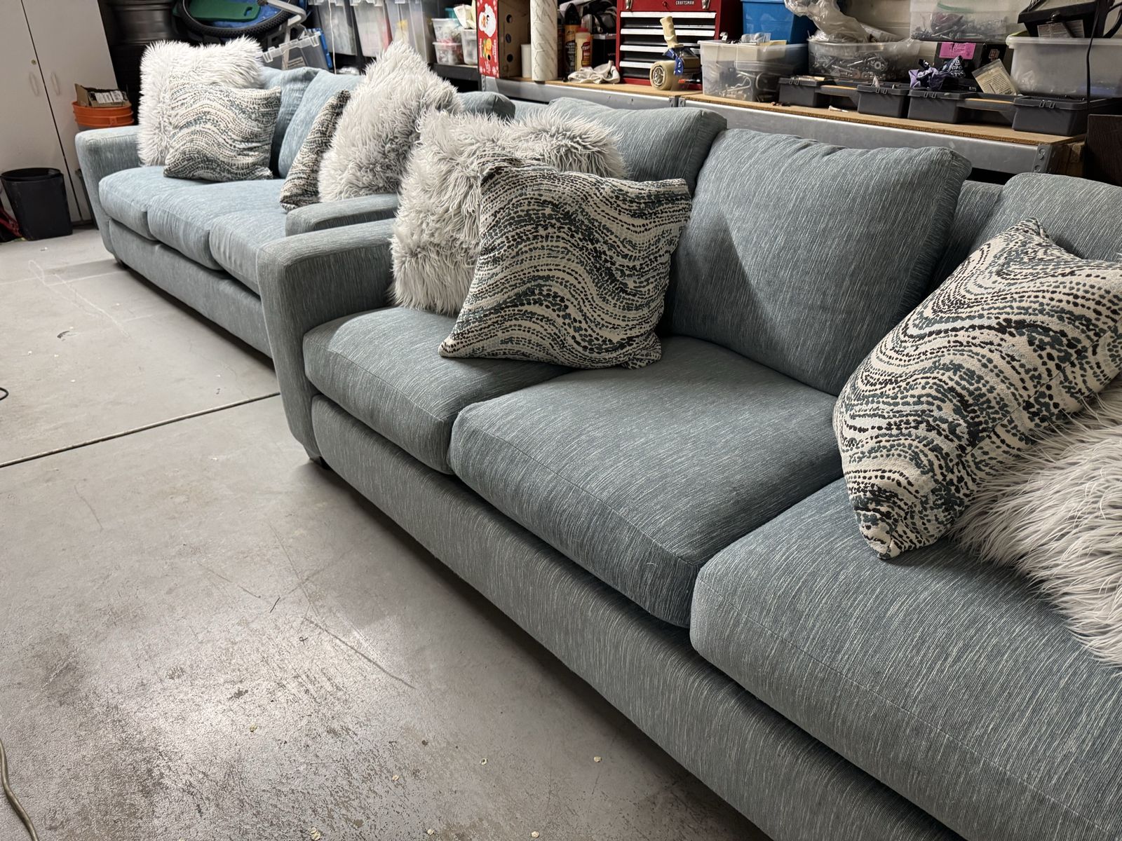 ApplePayBeautiful Osmond Design Custom ordered couches. $500 for the pair or $300 each . 93 1/2 inches wide. You can also have all the pillows. Everything has been cleaned and ready to go! There is one tiny spot we could not get out. (Green dot on an arm) see pics) Pickup in Cedar Hills. Venmo or Cash.