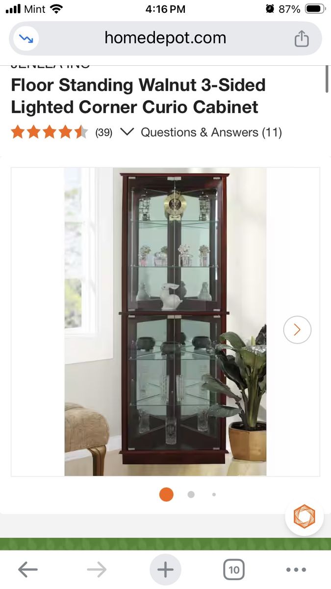 Brand new in box Floor Standing Walnut 3-Sided Lighted Corner Curio Cabinet