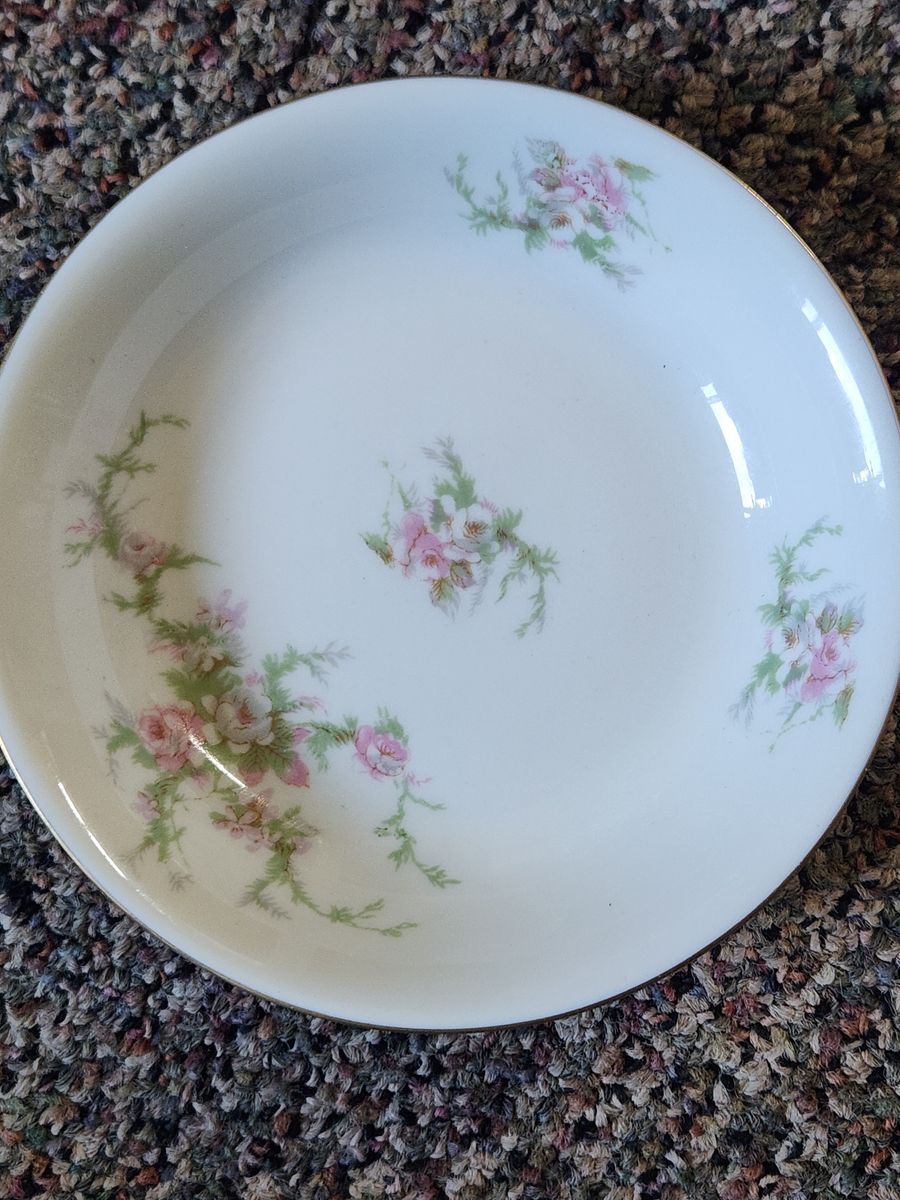 Royal Jackson Sandra Pink Rose China. Complete 8pc china set with service dishes and platter. Gilt edge. Great condition.