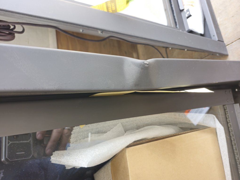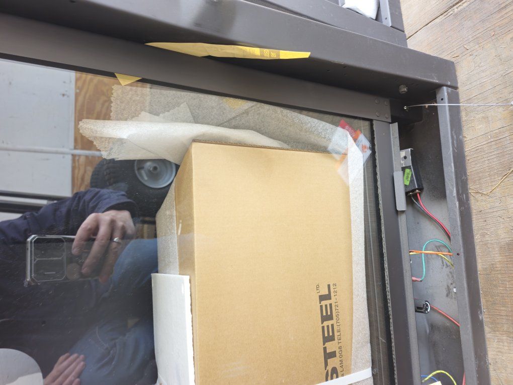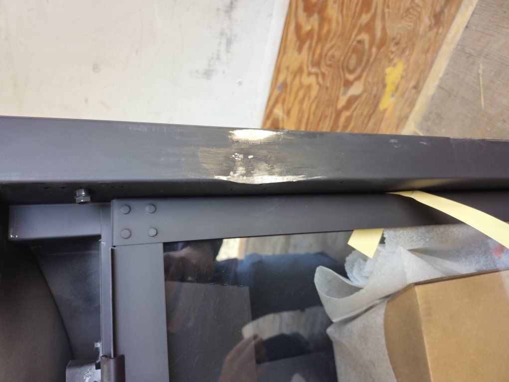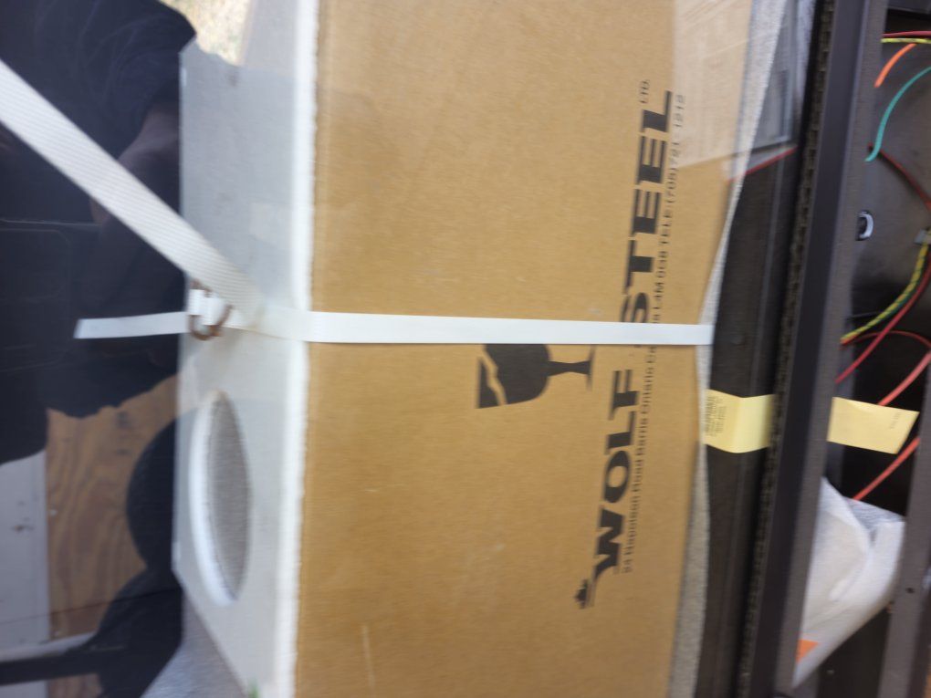 New but damaged on the outside metal, when you install these the metal is covered and you wouldn't see the damage, these sell online for $3000 so you would save a ton. Here is a link to one within everything you need to know, I have two of these both ate in the pictures. https://www.homelectrical.com/gas-fireplace/napoleon-nap-b36ntre1.1.html?hl=en-US