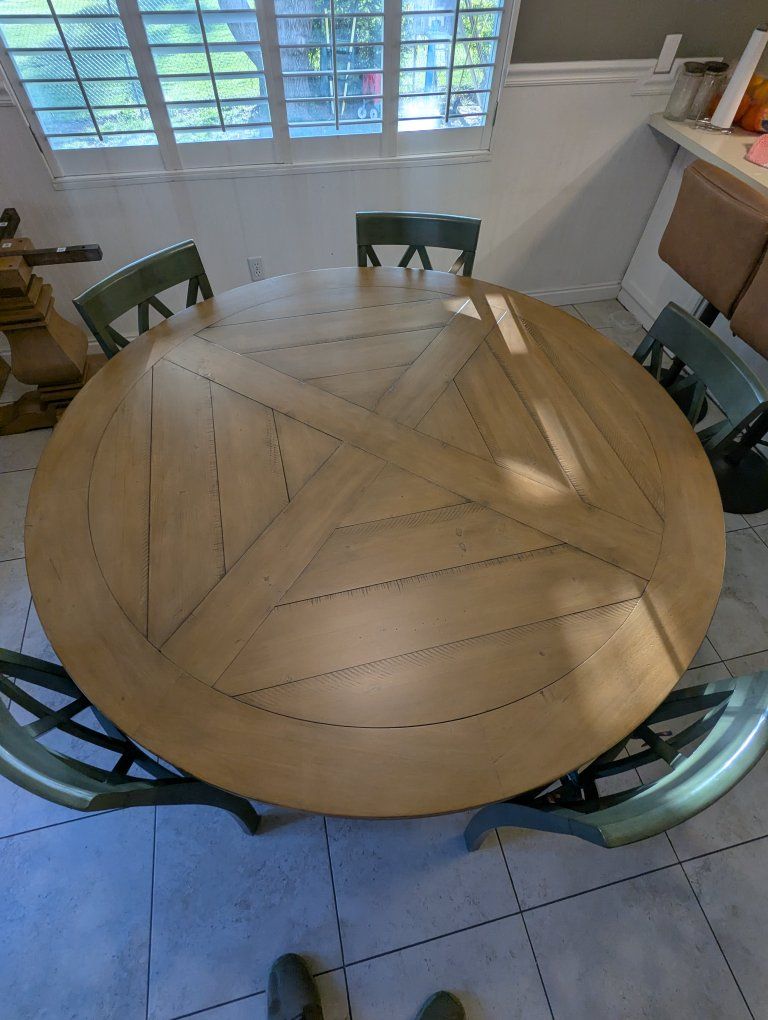 Brand new 60" round table. Purchased from living spaces. There was a tiny flaw in the top and so I filed a warranty claim. The warranty claim replaced the whole table. I was not required to return the old table. I can deliver to Davis/Weber county for a fee, possibly further depending on location