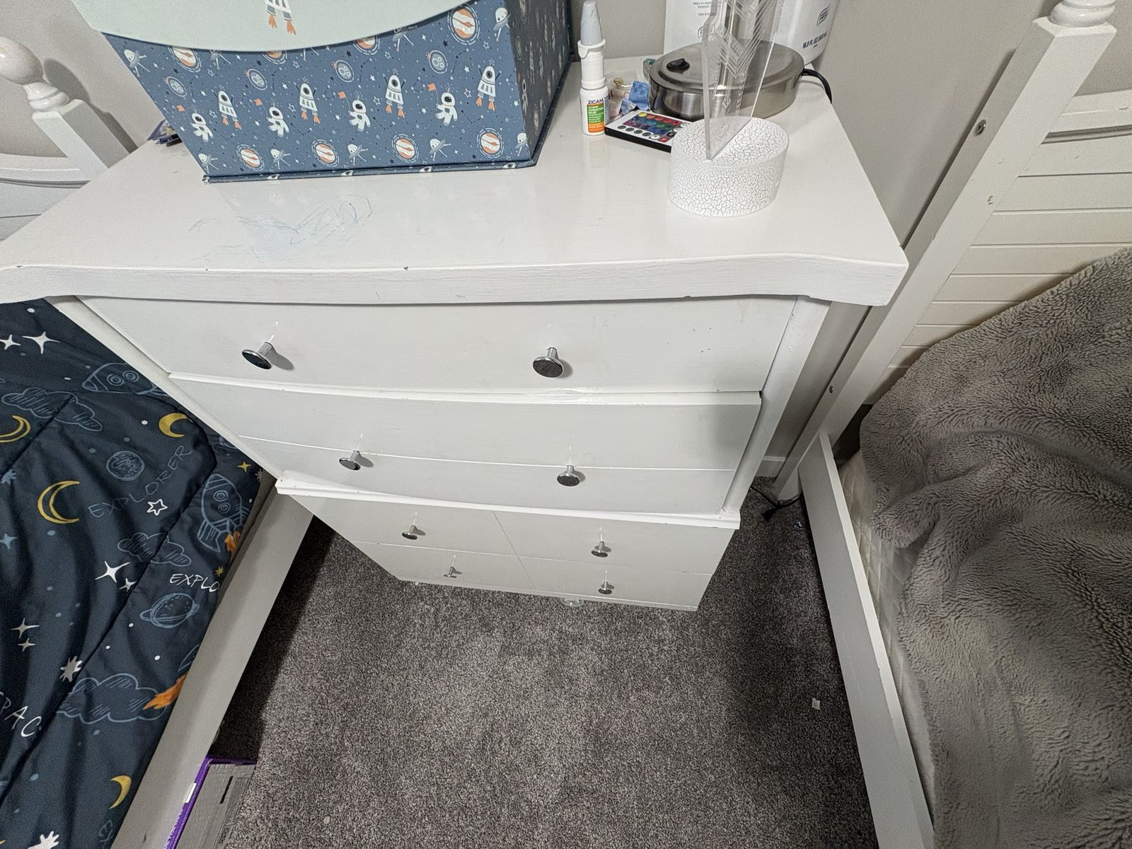 Beautiful white sturdy dresser with 4 long drawers.